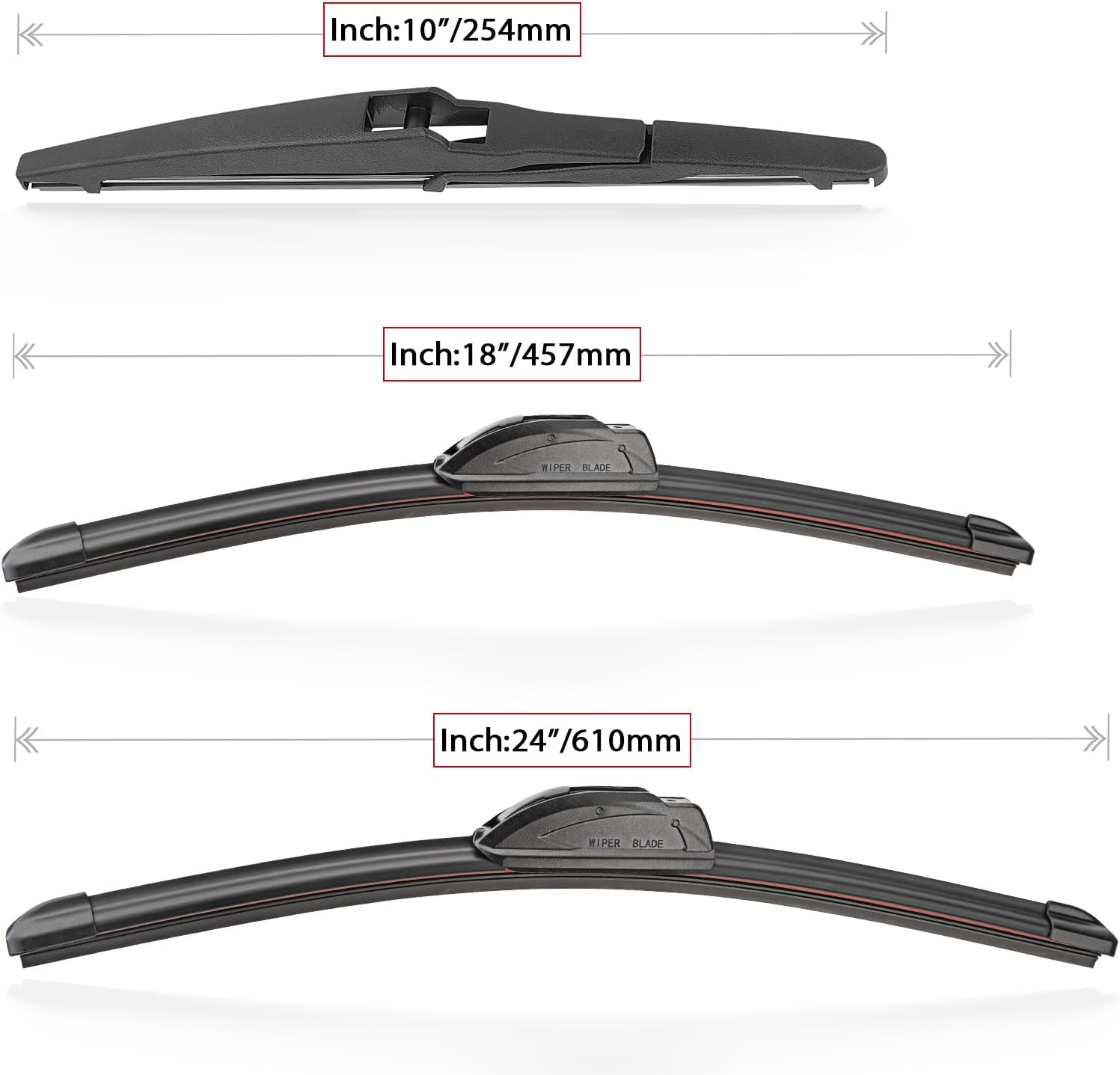 Windshield Wiper Blade Set Replacement for 2018-2022 Jeep Compass Original Equipment Replacement Front Wiper Blades-24"/18"/10" (Set of 3) U/J Hook
