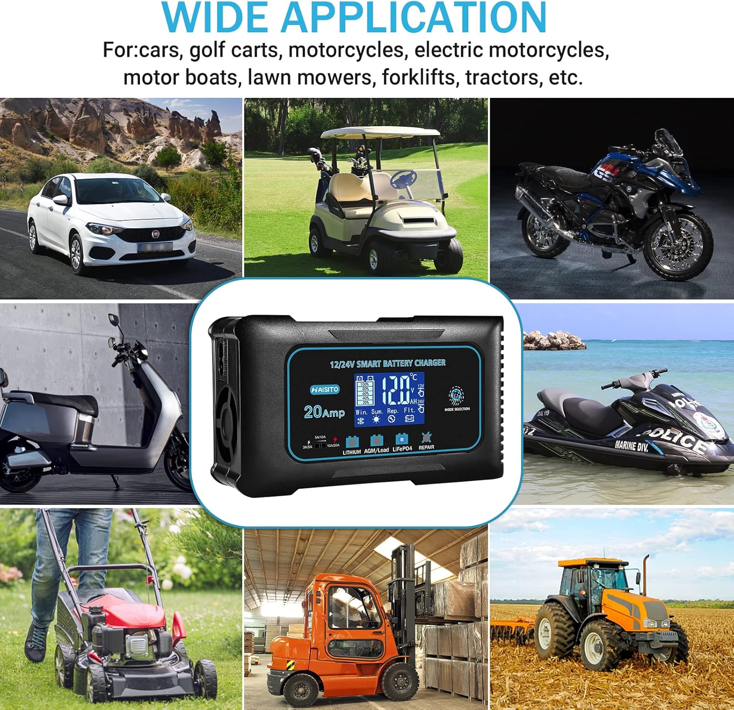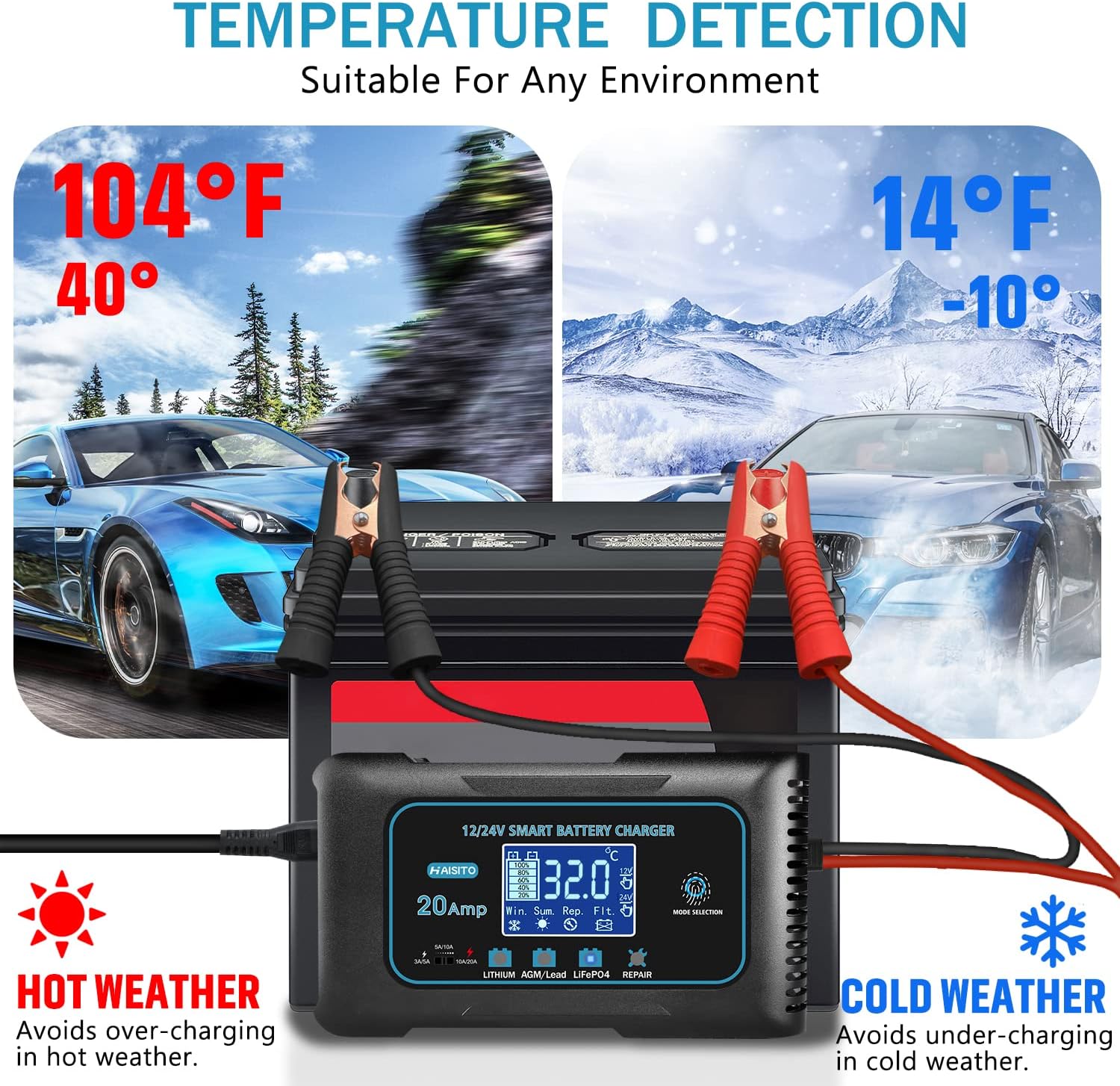 Haisito: 20A 12V/24V Smart Battery Charger –Automatic Maintainer, Trickle Charger & Desulfator with Overcharge Protection & Temperature Compensation – for Lead-Acid,LiFePO4 & Lithium Batteries