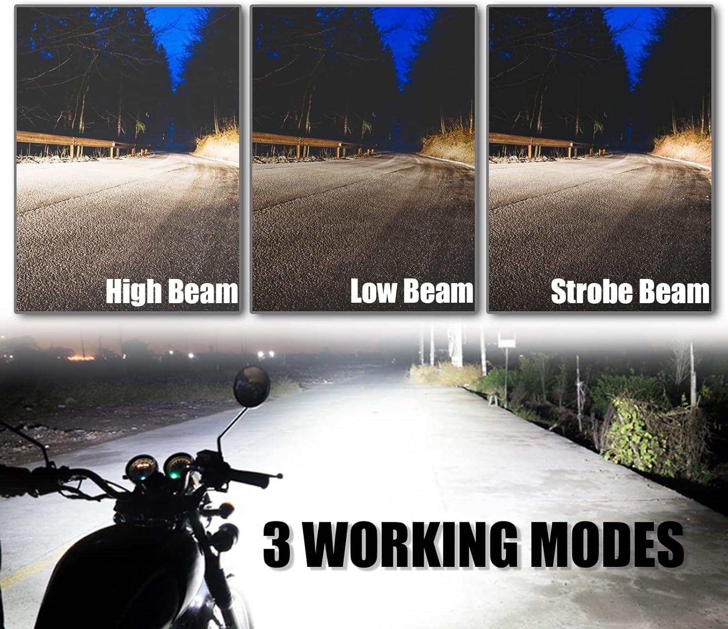 - [6 LED LIGHT BEADS & ULTRA BRIGHT] - Each Pakrys motorcycle driving light is equipped with 6 LED light beads, is brighter than the same type of light with 1/2/3/4 LED beads on the market. Besides, Pakrys fog lights for bike have 3 built-in operating modes: high beam, low beam, strobe beam, you can change the modes by turning the switch on/off in sequence. Pakrys LED motorcycle lights provide you a best lighting in foggy and dark environment.