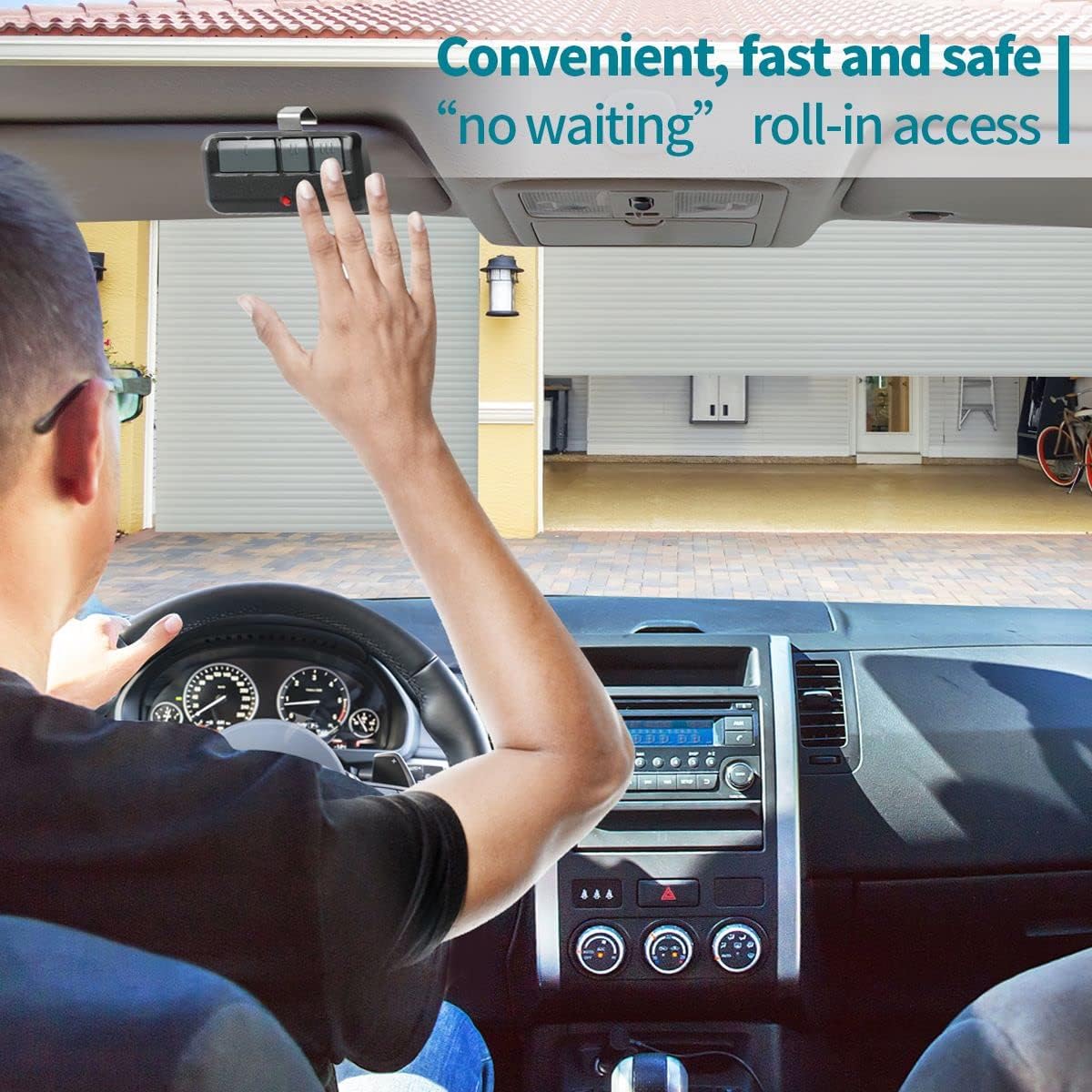 - 【Long Distance Remote 】The garage door opener remote works within 120 feet from the garage door opener for “no waiting” roll-in access. The remote control has a metal clip that can be clipped to the sun visor of the car, you can easily open the garage by press the button from the driver's seat.