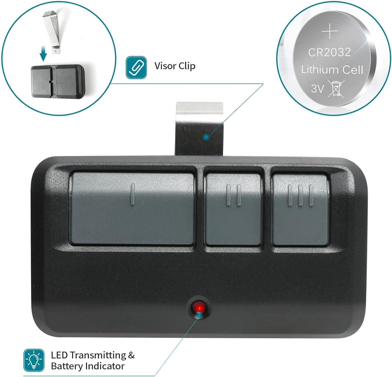 - 【3-Button】The garage door opener remote has 3 buttons that can control 3 different garage door opener respectively. it’s the easy option for adding an extra remote to multi-car families or for replacing lost or broken remotes.