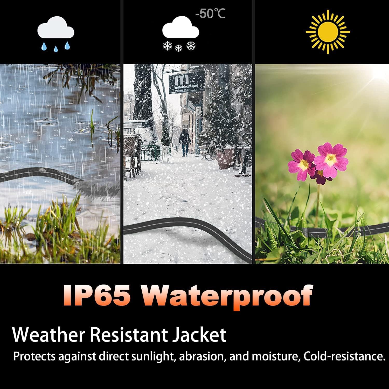 - Hook & Strain Relief Design: The plug and socket end have a strain relief design, which is not easy to break when bent and used; The socket has a hook design, which is easy to plug and unplug and can be hung in a humid environment, making it safer to use