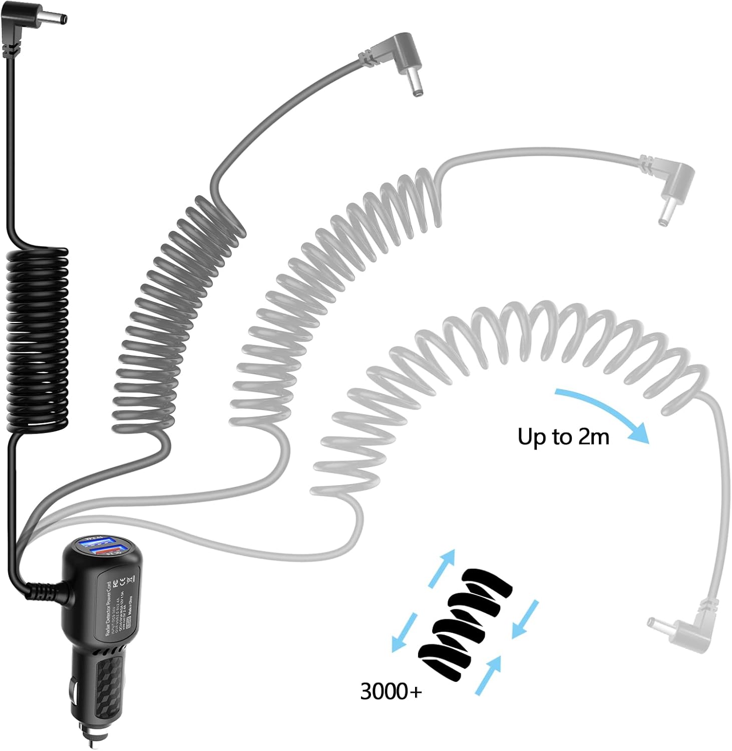 - 【New upgrade Radar Detector Power Cord】:This Radar Detector Power Cord Quick charger with QC3.0 dual USB interface and can be used as two USB port car chargers. with one Radar Detector Power Cord 6.5ft,DC3.5 interface