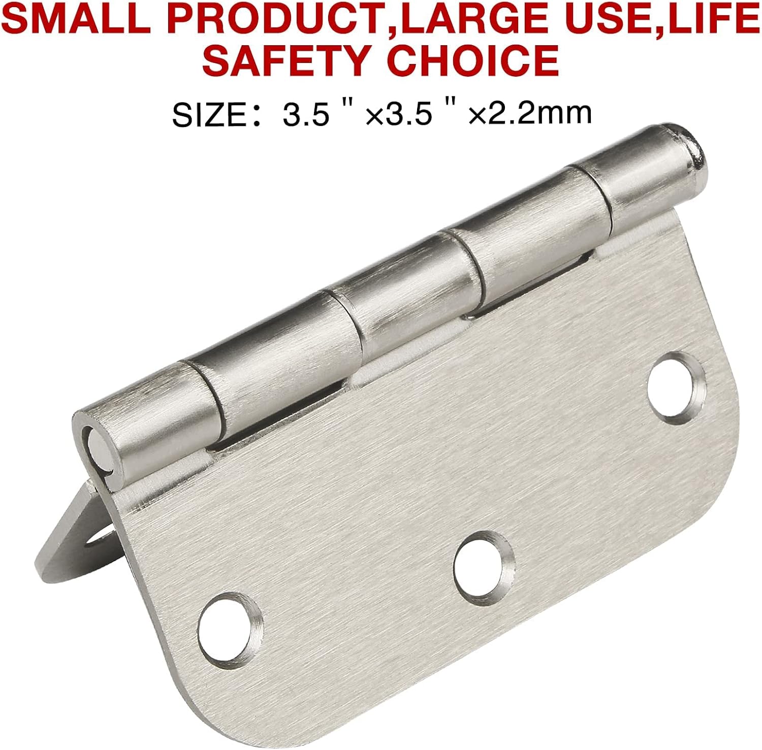 12 Pack Interior 3.5" Brushed Nickel Door Hinges for Doors 3 1/2 Inch Rounded 5/8" Noise Free Residential Standard Hinge for Study Spare/Play/Lounge/Bed Room,Walk-in Closet,DIY Table,Celler,Balcony