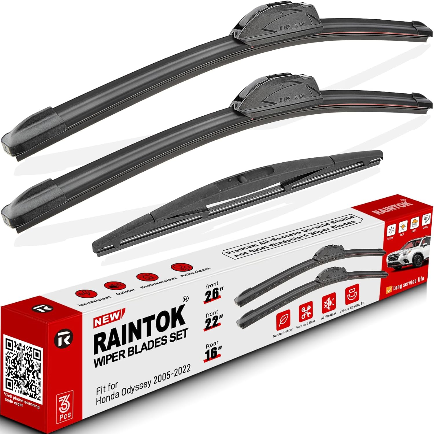 Windshield Wiper Blade Set Replacement for 2005-2022 Honda Odyssey Original Equipment Replacement Front Rear Wiper Blades-26"/22"/16" (Set of 3) U/J Hook
