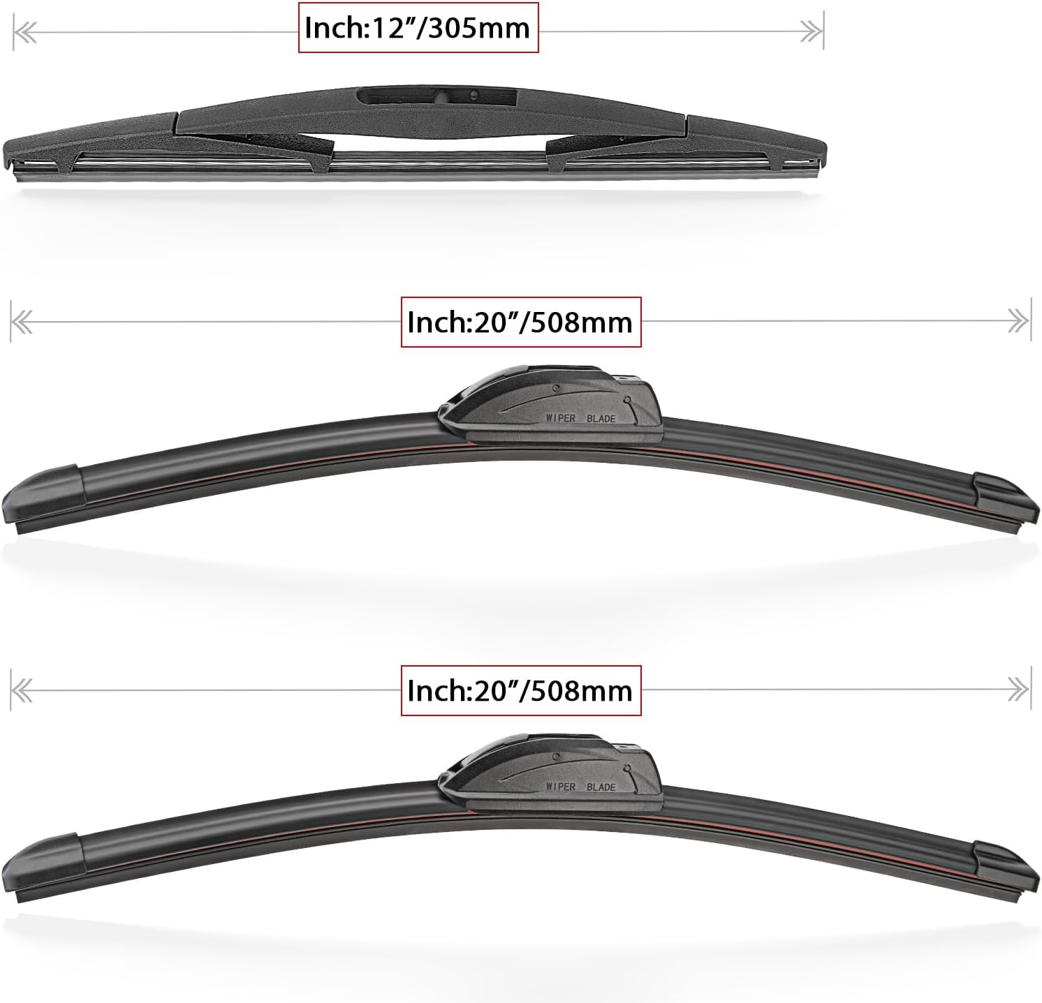 Windshield Wiper Blades Replacement for 2003-2009 Honda Element / 2009-2014 Nissan Cube Original Factory Quality Front Rear Wipers Blade Set for My Car - 20" 20" 12" (Pack of 3)