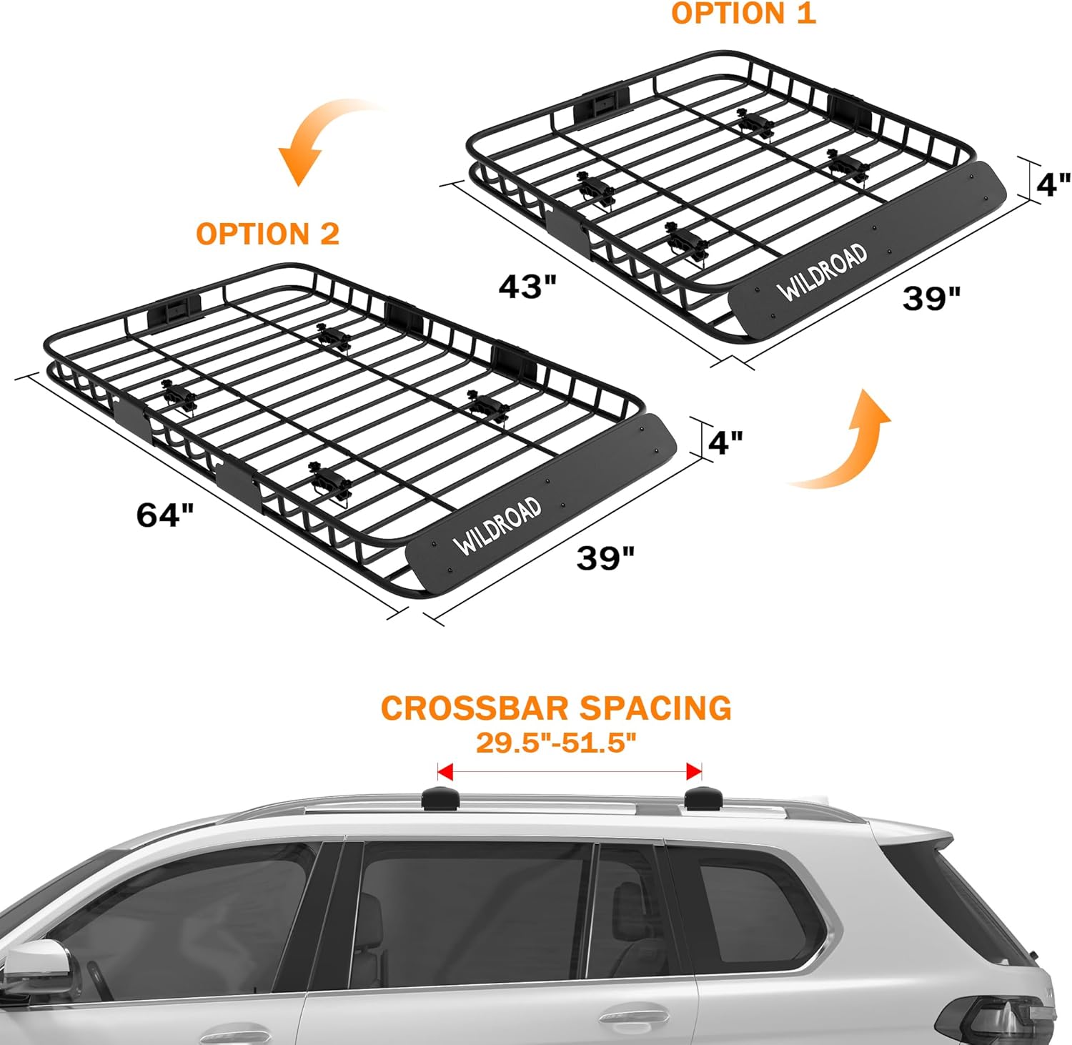 WILDROAD Roof Rack Cargo Basket, Upgraded 4” Fence Car Roof Basket with Extension, 64"x 39"x 4" Universal Car Top Luggage Holder Carrier Basket Fits for SUV Truck Cars