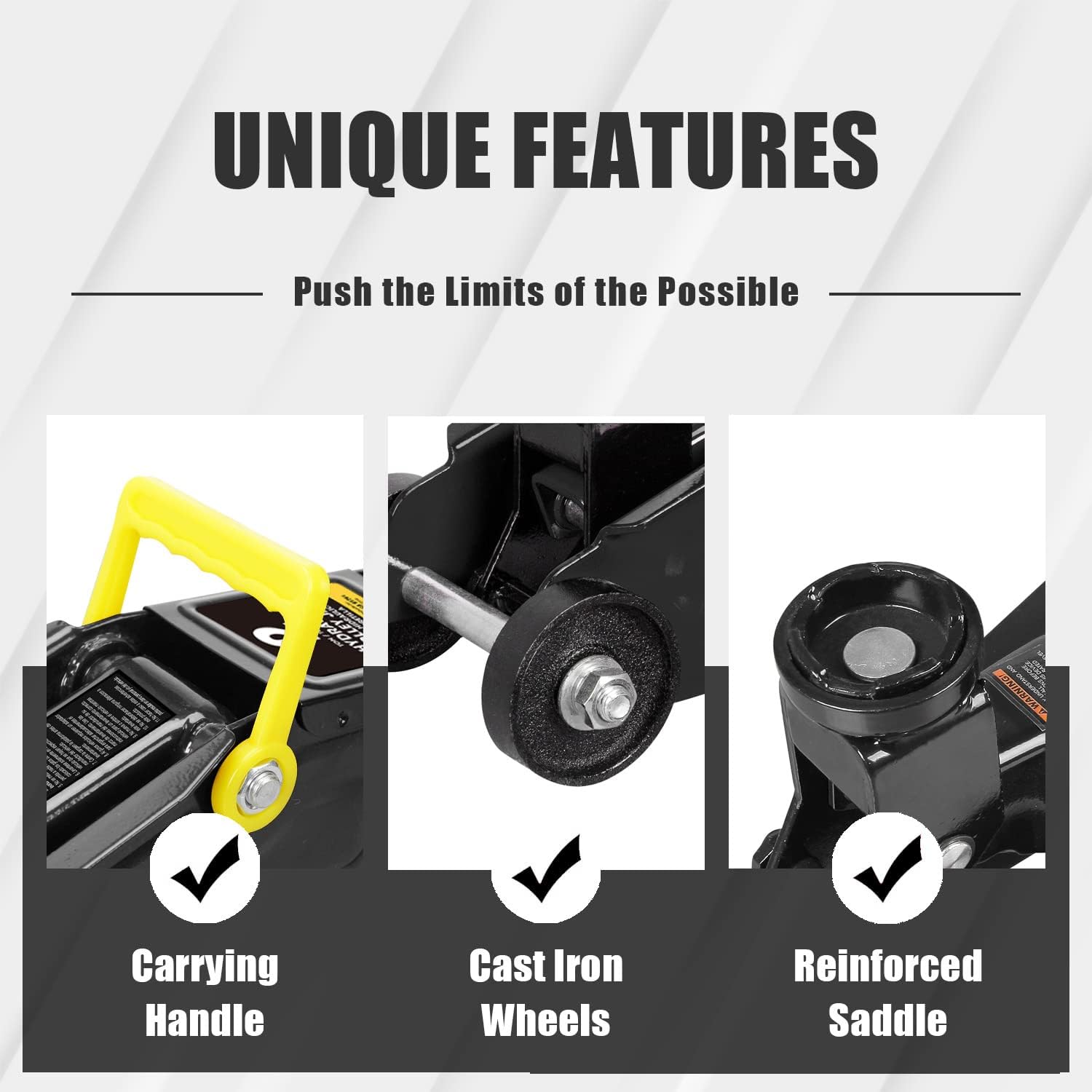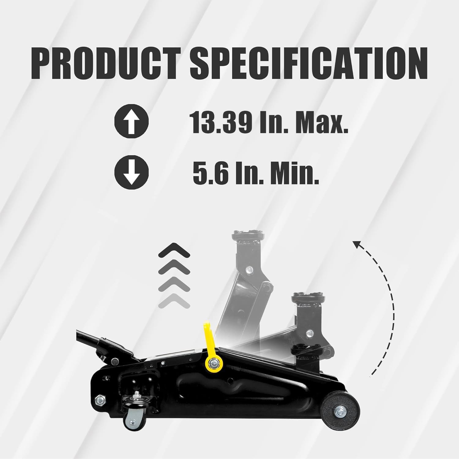 - Features a 2 ton (4,000 lb) capacity with a minimum lifting height of 5-3/5" and a maximum height of 13-3/8"; ideal for most cars