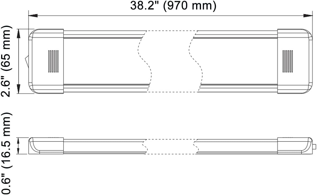LED Interior Utility Light Fixture 38.2" x 2.6", High Lumen-Output Low Current Draw Energy Efficient, Frosted Lens 6000K Cool-White Even Diffused Beam, On/Off Rocker Switch 12V-24V DC, 1-Pack