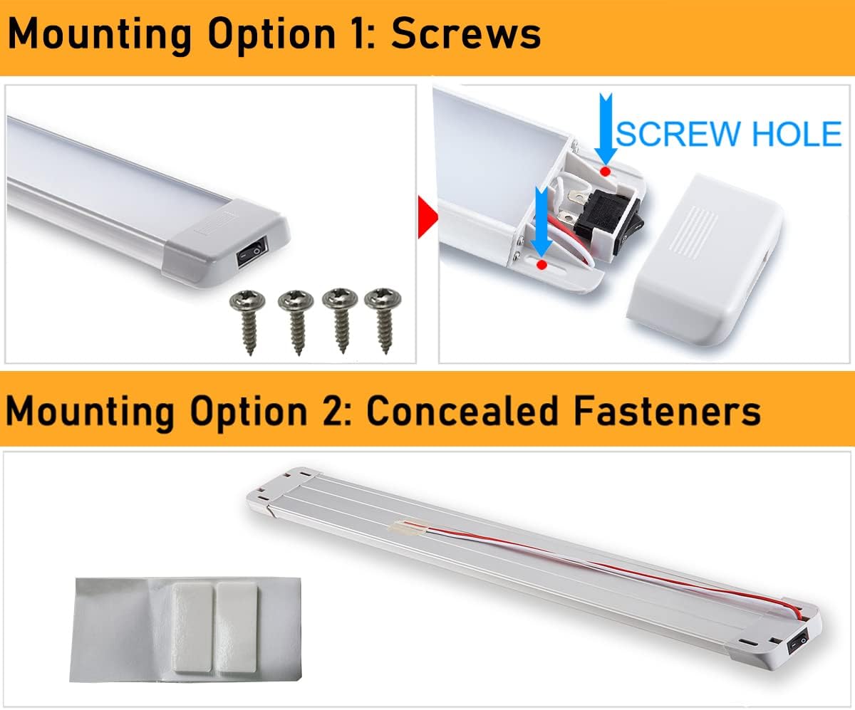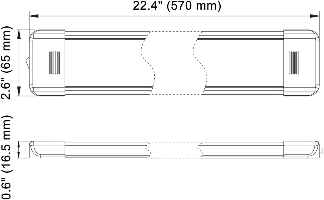 LED Interior Utility Light Fixture 22.4" x 2.6", High Lumen-Output Low Current Draw Energy Efficient, Frosted Lens 6000K Cool-White Even Diffused Beam, On/Off Rocker Switch 12V-24V DC, 1-Pack