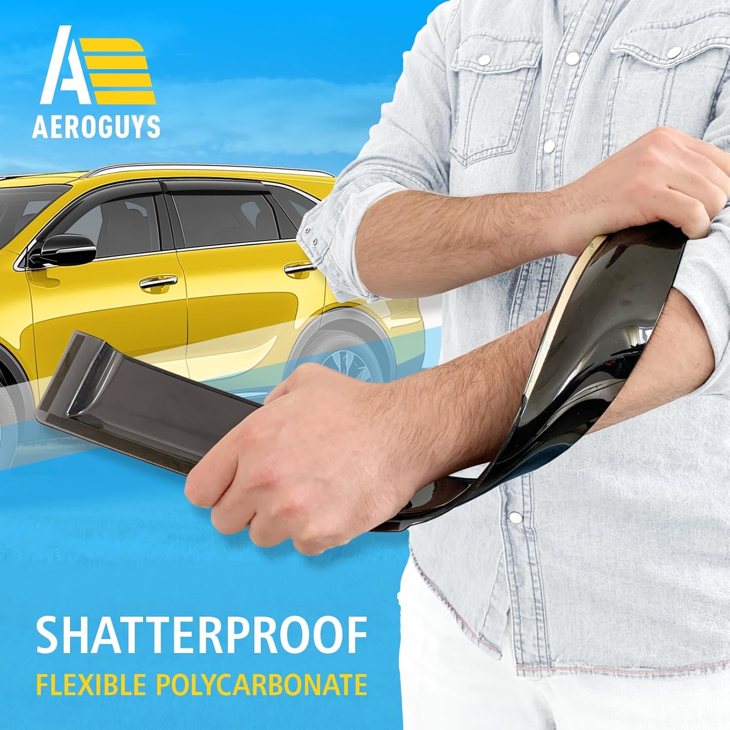 - Incredibly Durable AEROGUYS Auto Window Deflectors β They are made with strong and tough polycarbonate which is clear and scratch-resistant. They also provide UV protection making your ride more comfortable under all weather conditions.