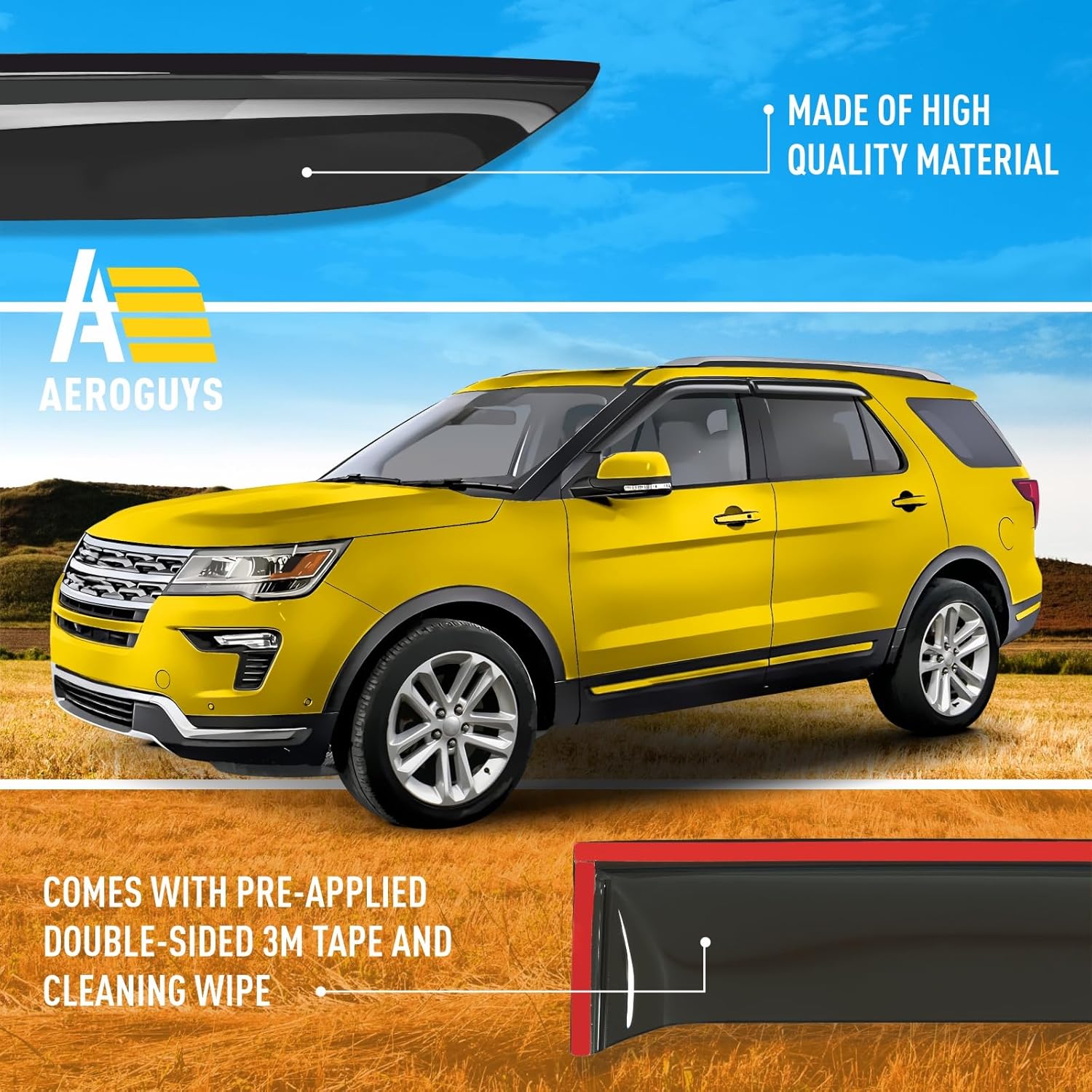 Extra Durable Window Deflectors Tape-On Window Visors Rain Guards Fit for Ford Explorer 2011-2019, Sun Visors, Wind Vent for Shades, Exterior Car Accessories - 4pcs. AG0040