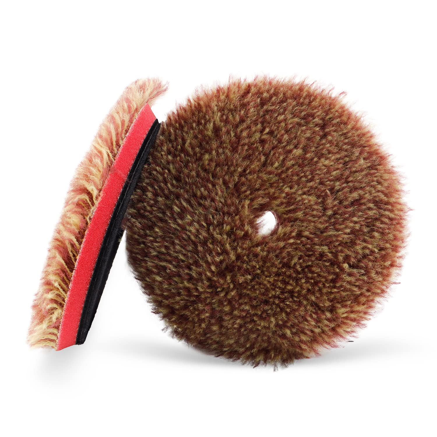 SPTA Wool Polishing Pads, 2Pcs 5 Inch (125mm) Wool Cutting Pad, Long Hair Wool Buffing and Polishing Pad Set, Wool Buffing Wheel for Heavy Cut for 5 Inch Car Polisher Polishing, Buffing and Cutting