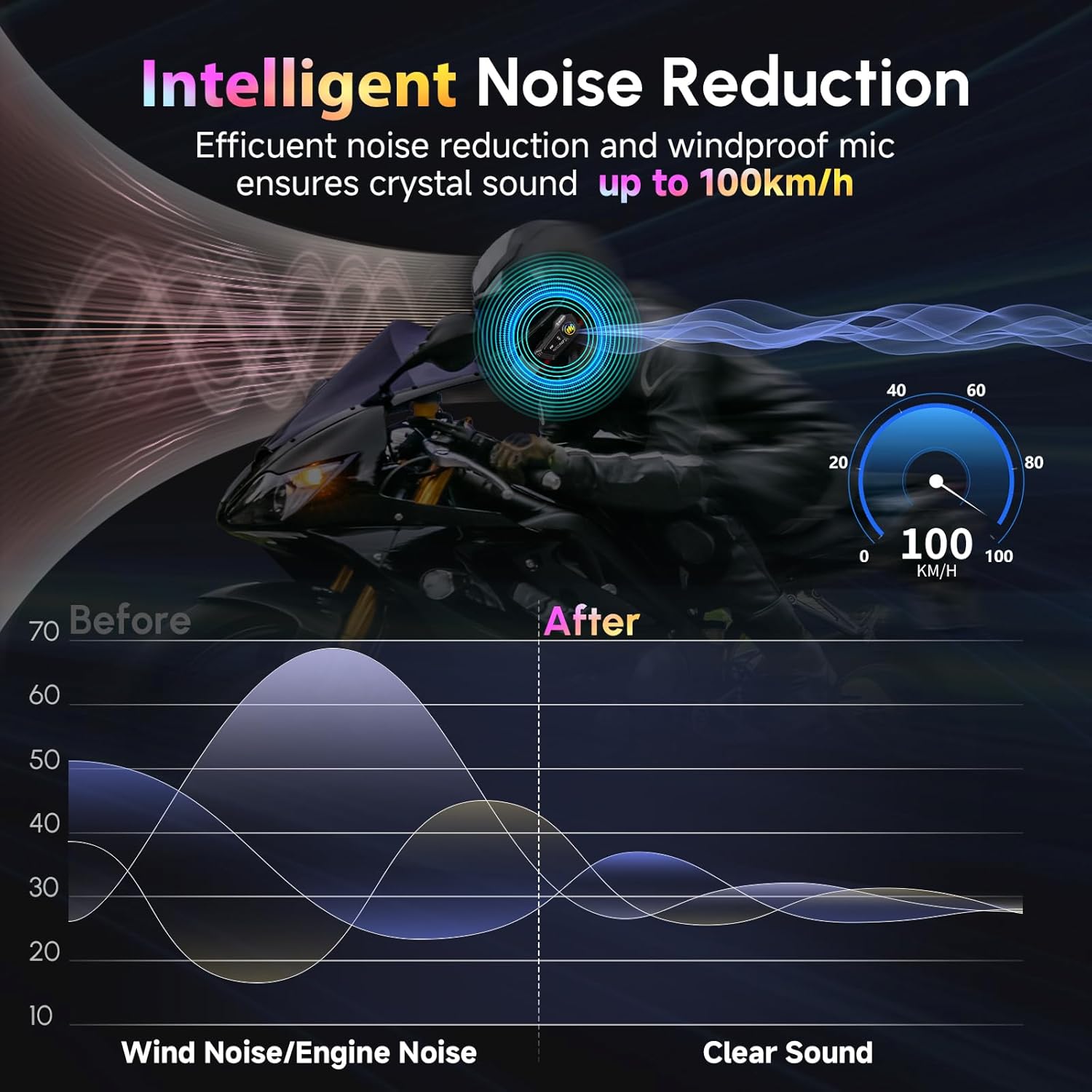 - 【Aesthetic Upgrade - Sleeker, More Intuitive & Brighter】Building on its proven design, the motorbike helmet speaker gets a bold new look with carefully refined details that set it apart. The enhanced button layout features raised, ergonomic controls for effortless operation, even with gloves on. And with the upgraded RGB lighting, your ride shines brighter than ever—more dynamic, more eye-catching, and unmistakably yours.