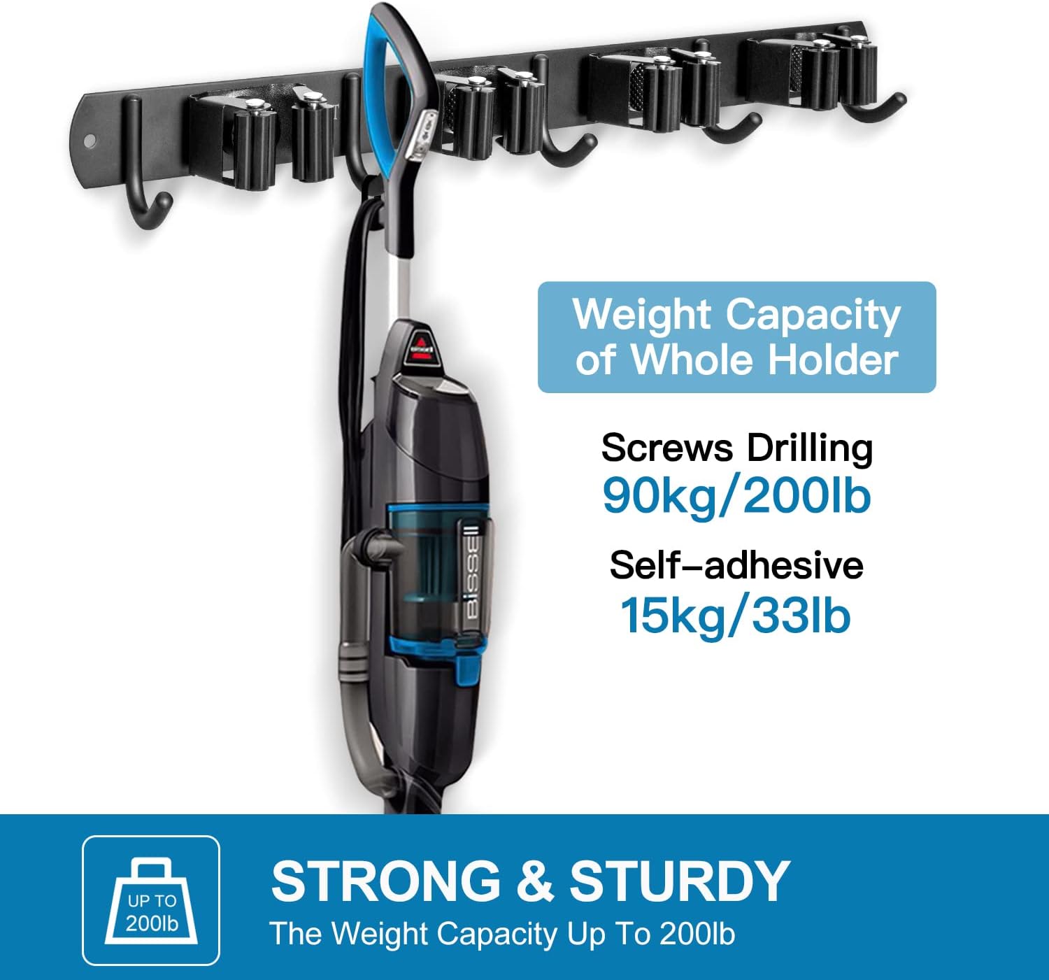 - STRONG & STURDY: Broom and mop wall mount is made of stainless steel, corrosion-resistant, moisture proof and waterproof. Compared with the plastic mop holder, it's more stronger and sturdy. And this broom organizer wall mount can hold up to 200 pounds when mounted it with the screws