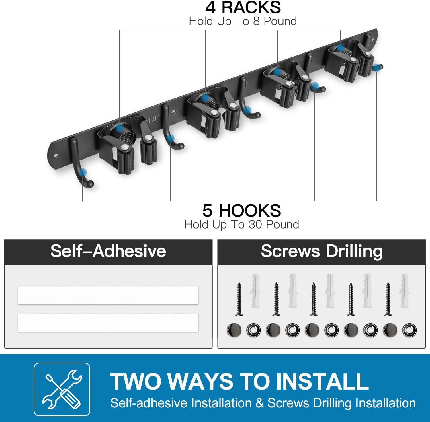 - HEAVY DUTY: Mop holder grip everything tightly and securely without slip. It can hold up to about 9 tools in total. Keep your place cleaned up and keep things organized
