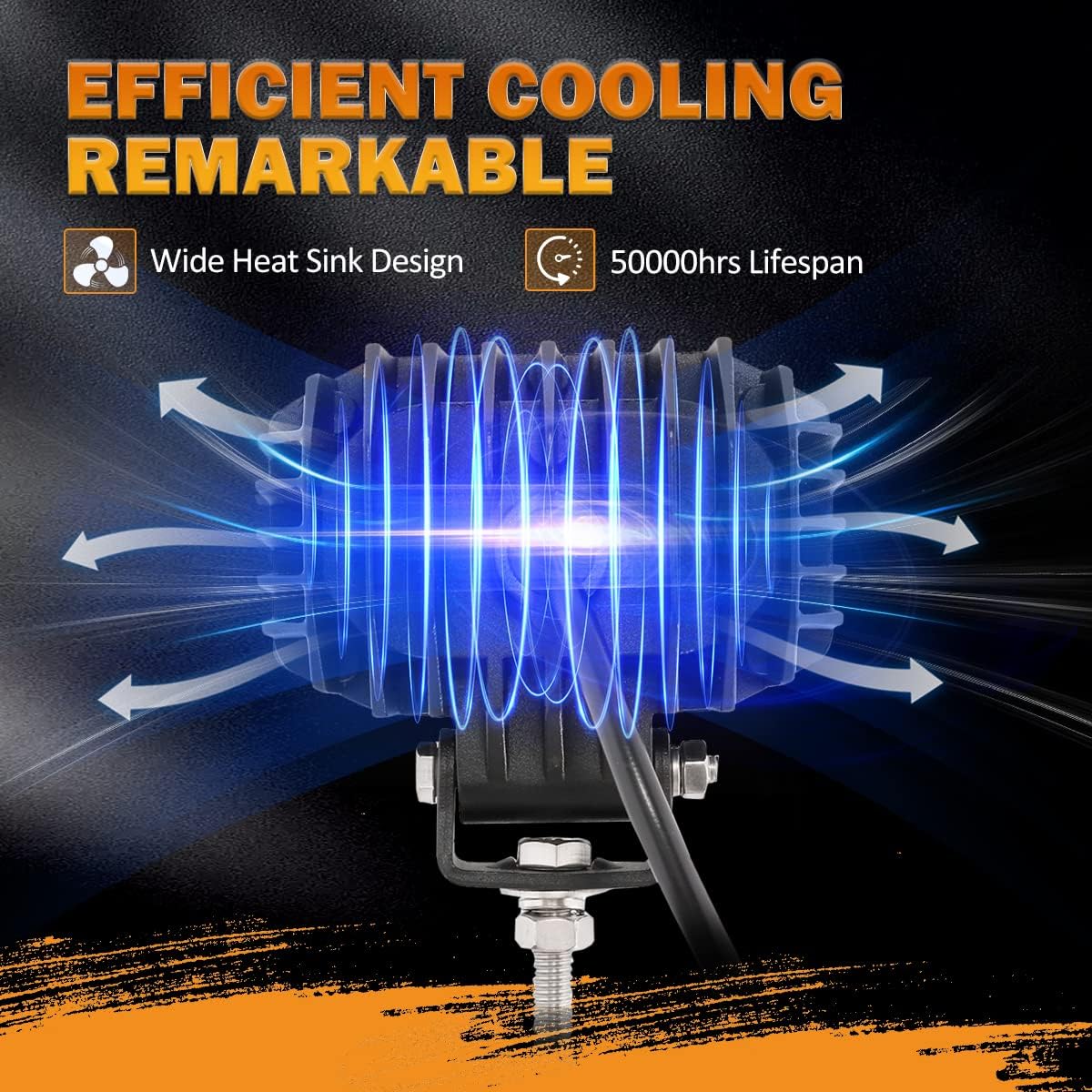 - 【HEAT DISSIPATION】LED dirving fog light adopt Lower Power Consumption technical. All in aluminum profile and thick enough heat sinks housing, helps it speed up the heat dissipation and make it built to last.Effectively prolong lifespan of the led work light more than 50,000 hours.