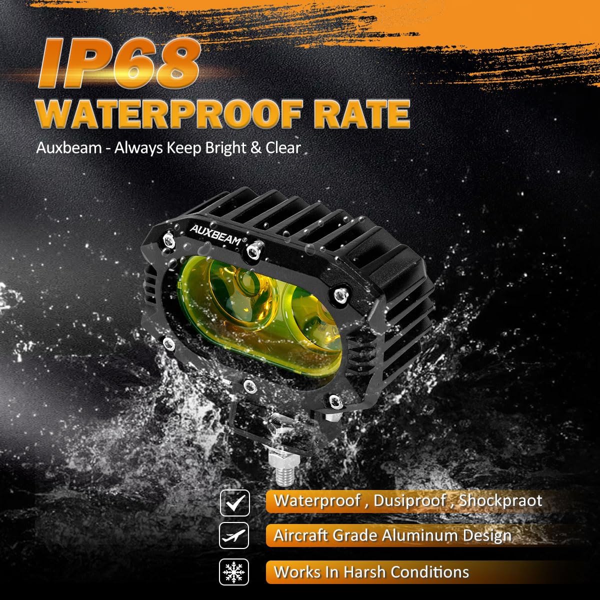- 【SUPER BRIGHT LIGHT】60W/Pair high Intensity 5050 Chip and specially designed 12D optical lens, can provide 6000LM spot beam and 3000K cool yellow light. It can creat a 120° yellow flood beam, which can emit a longer and wider illumination and provide better visibility in day light.