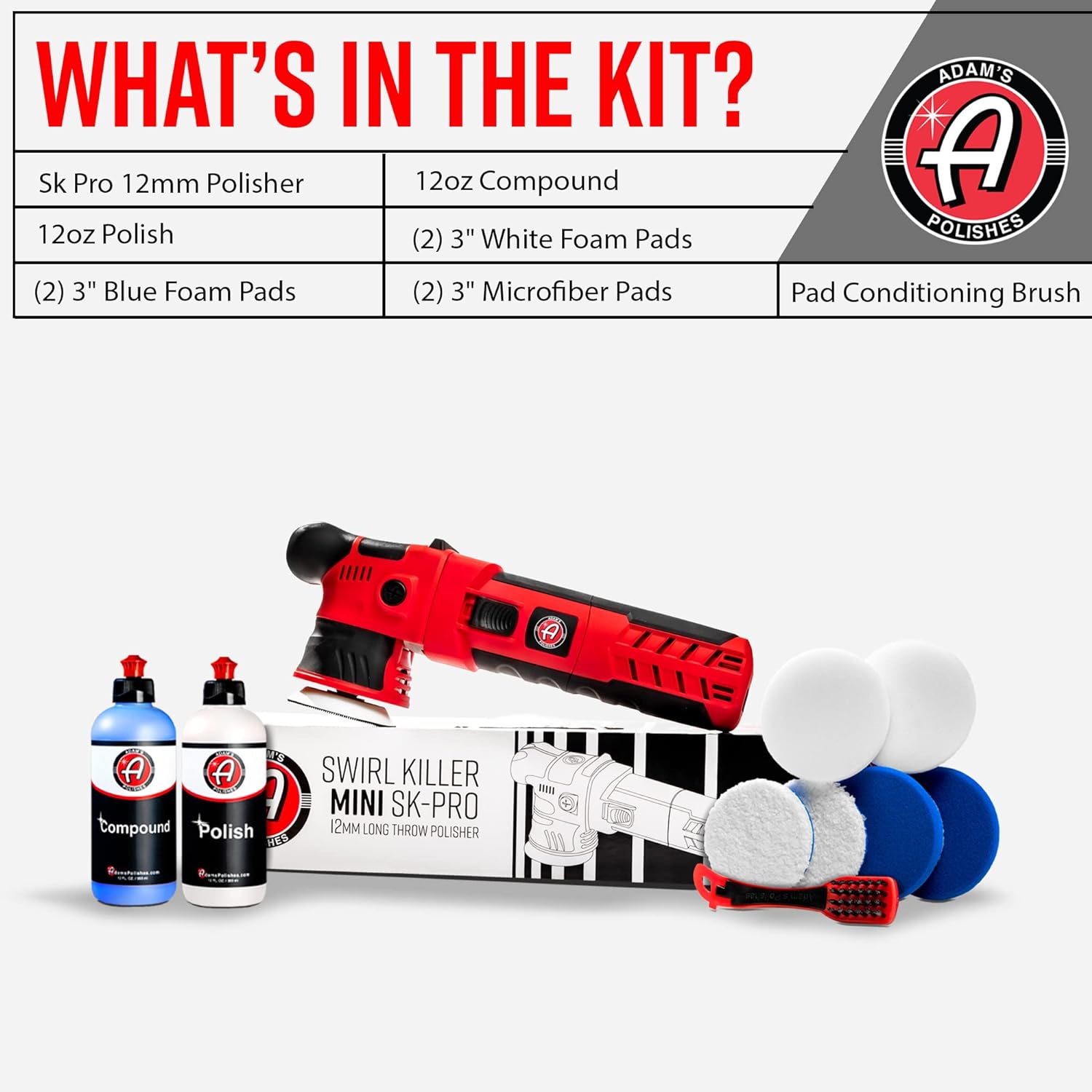 Adam's Polishes SK Pro 12mm Car Polisher Kit (10 Item) - Professional Dual Action Polisher for Car Detailing - Paint Correction, Waxer Buffer DA Polisher - Variable Speed Car Polisher System