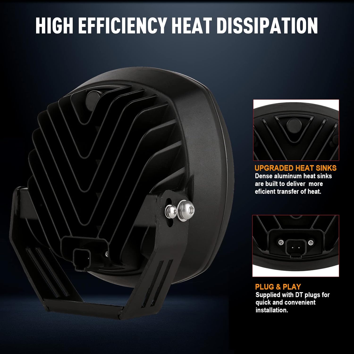 - 【HIGH STANDARD WATERPROOF GRADE】Offroad lights with wiring harness conform to IP68 and IP69K standard. Led spot lights applied military breather design to prevent condensation and fogging. Lengthen round led light life. Balance light bar’s differential pressure to achieve thermal balance is attained. Let the sealed lamp beads have better heat dissipation. Enhance the usage of reliability in extreme environment.