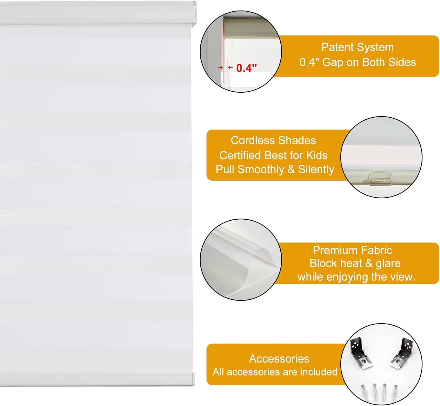 Persilux Cordless Zebra Blinds for Windows Free-Stop Roller Windows Shades (34" W X 47" H, Cream) Dual Layer Light Control for Day and Night, Light Filtering Sheer Shades for Home, Bedroom