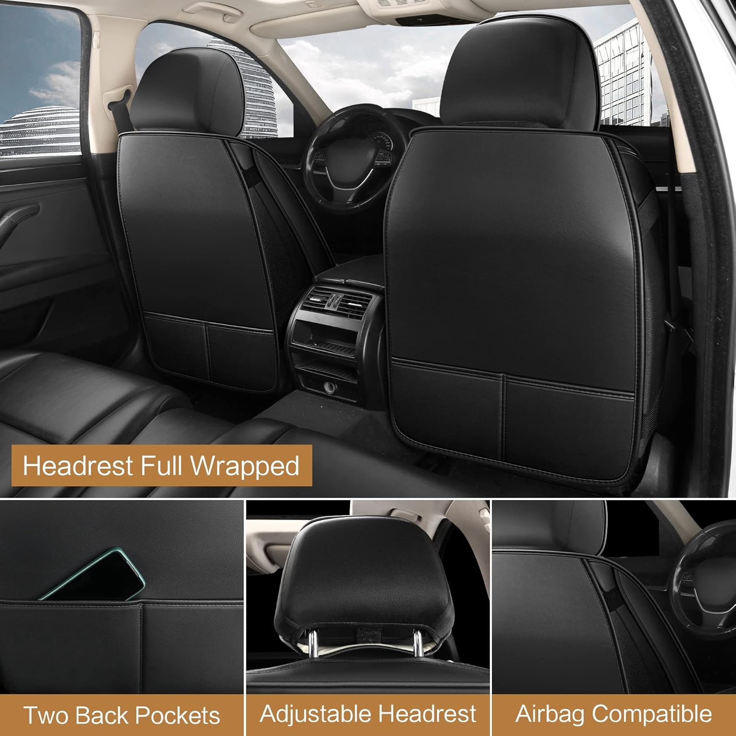 - Stylish & Luxurious: These are the perfect seat covers for your car. High-quality artificial leather and excellent appearance design refresh your car instantly, beautify the car interior and bring joys to your life.