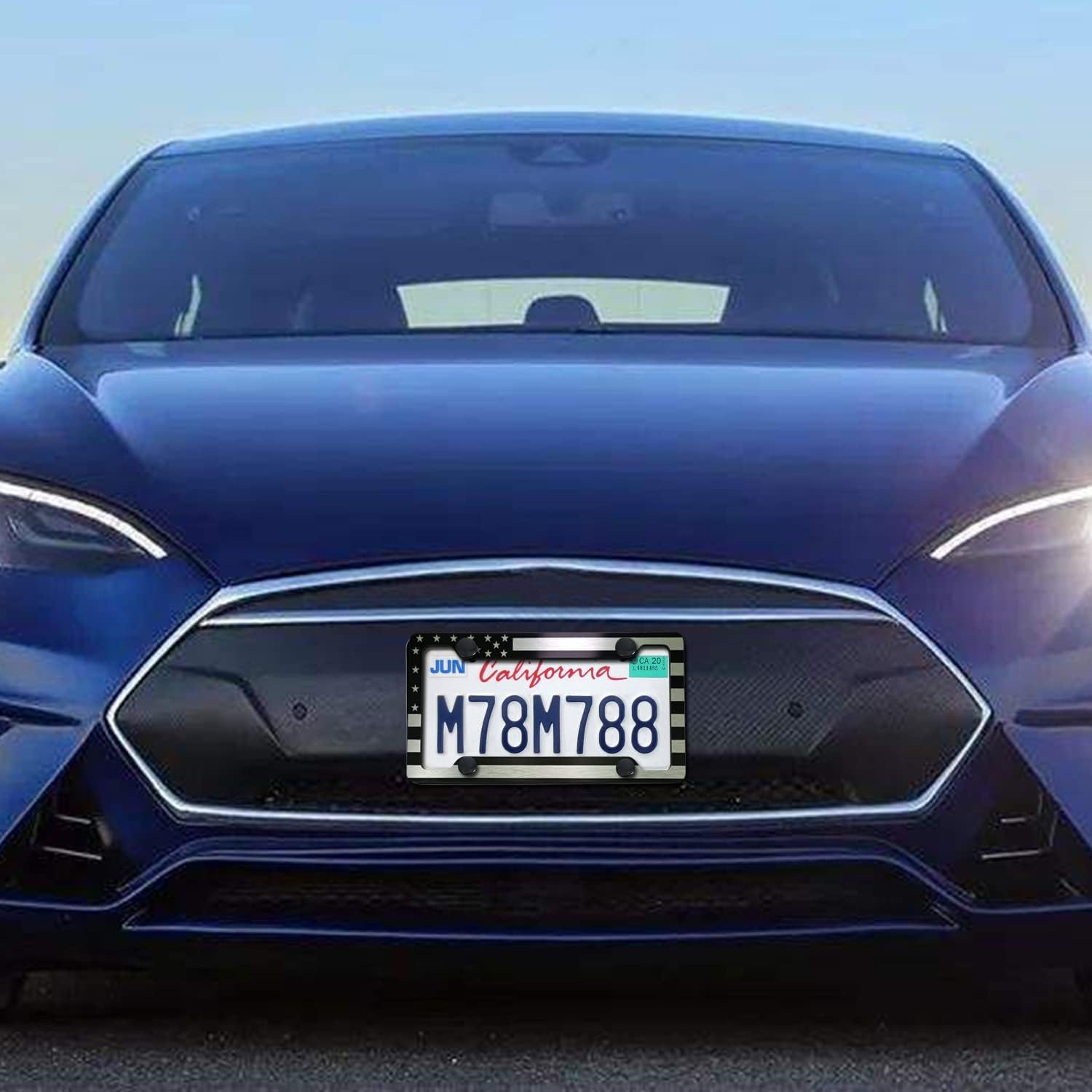- For Universal USA License Plate - The black and white star strips flag frame cover is designed according to 6" x 12" (15.24 x 30.48 cm) license plates, suitable for standard USA/Canada license plates. The Novelty slim frame will not block the license plate registration tags in 4 corners, made from Brushed Aluminum. Customized frames for cars suitable for all who love American