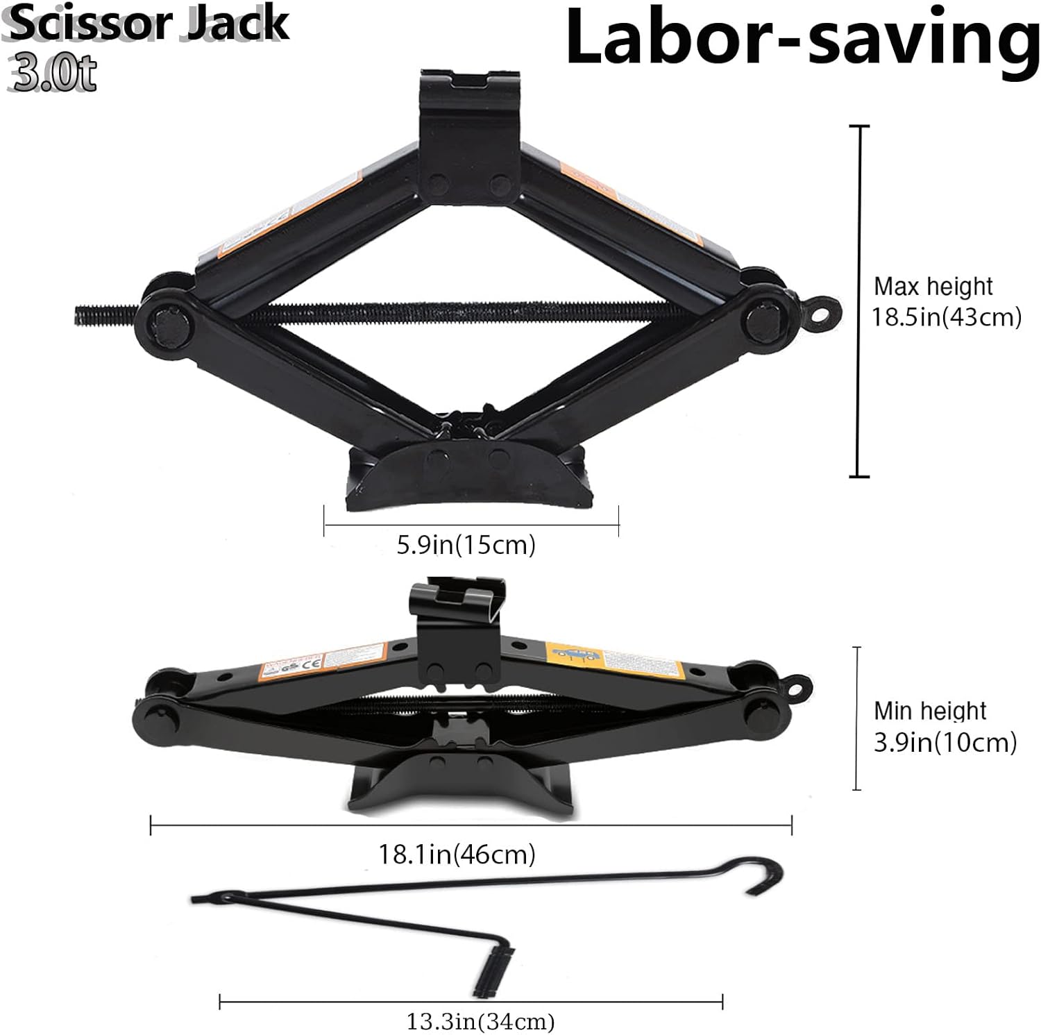 Scissor Jack for Car-3.0Ton(6614lbs) 丨Car Jack Kit-Tire Jack丨Portable,丨deal for SUV and Auto-with Crank Handle丨Heavy Duty Material,Black (3.0T)