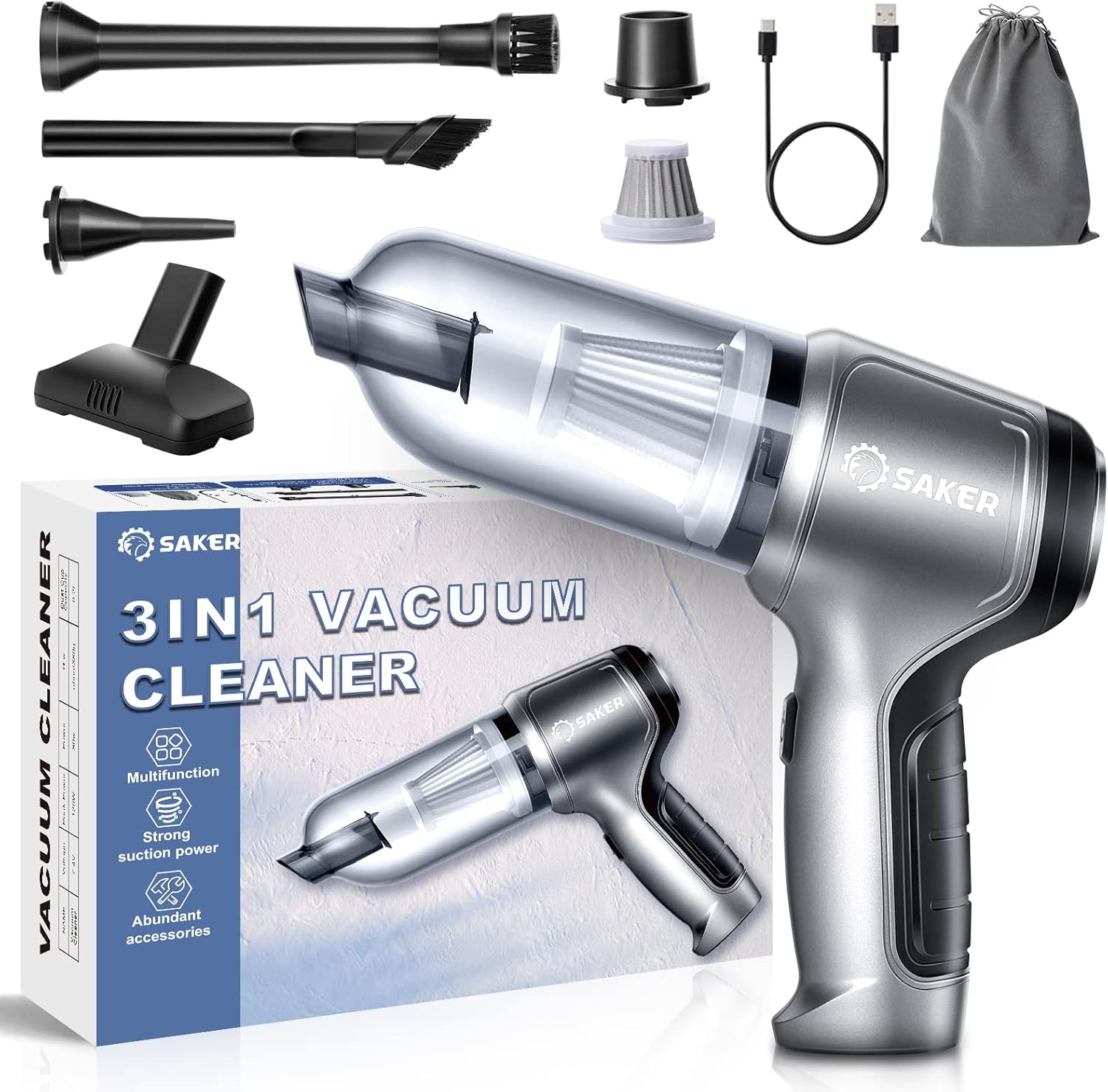 Saker Handheld Vacuum Cleaner Car - Wireless Mini Vacuum Cleaner 3 in 1 Multifunctional Brushless Motor 12000PA with USB-C,Portable Handheld Car Vacuum Cleaner for Keyboard Cleaning, Outdoor and Home