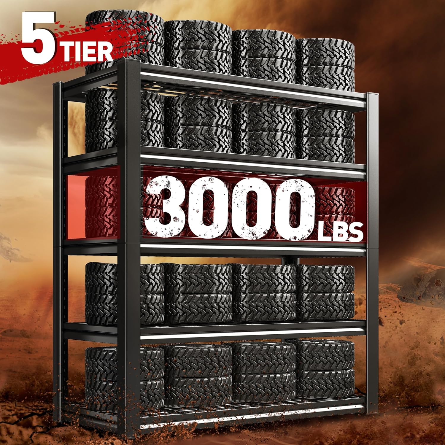 - 【3000LBS Capacity Sturdy & Storage Shelves】 Upgraded REIBII garage shelving heavy duty has thickened double metal legs.Shelving is made of high-quality metal, instead of flimsy particle board, sturdy and stable than ordinary garage storage shelves. Each garage shelving capacity 600 lbs