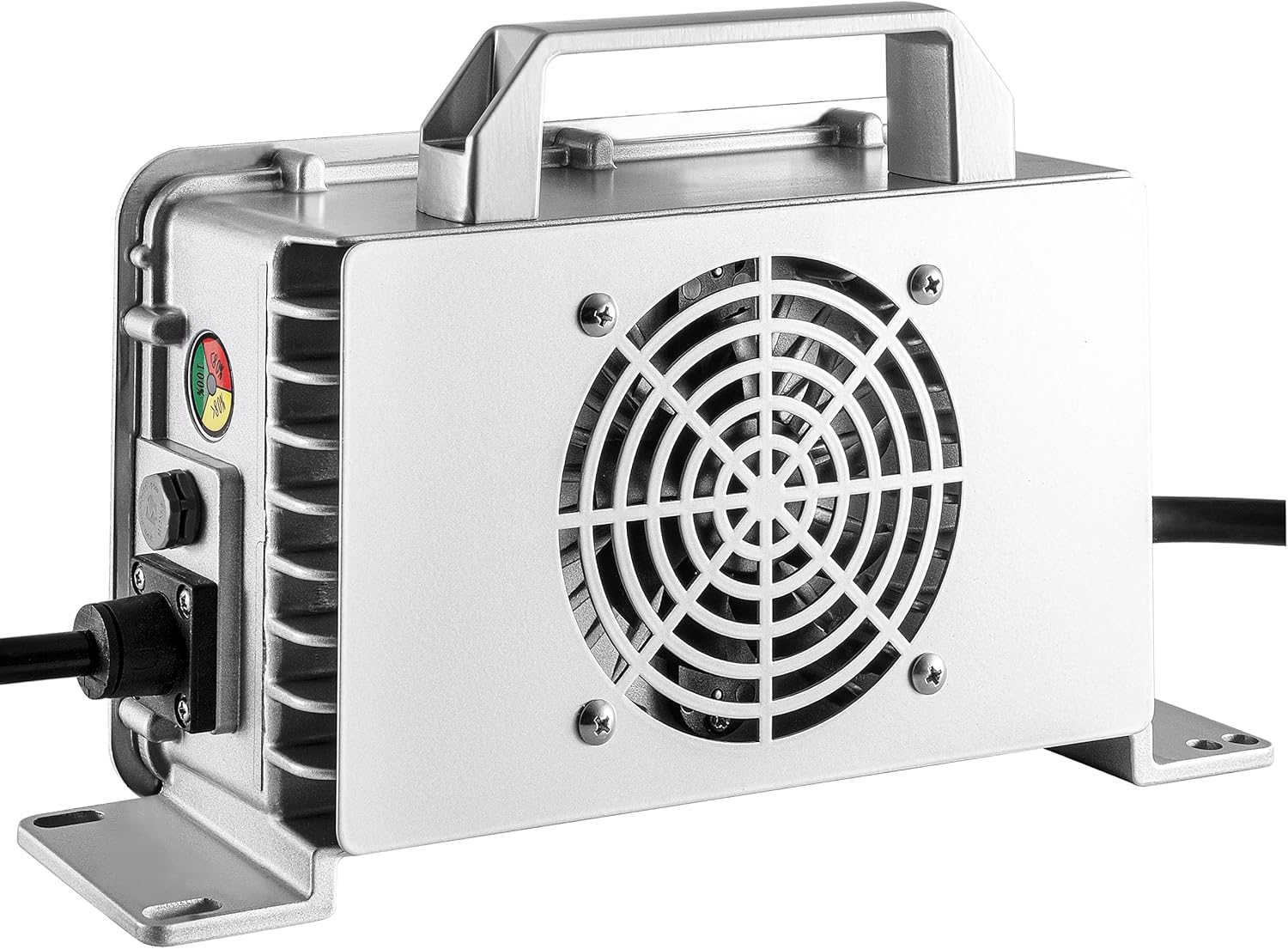 - [Aluminum casting shell waterproof and dustproof ] The shell is made of aluminum casting, the charger is filled with AB glue to protect and cool down the main board and components, waterproof and dustproof rating of IP66, AC cable length of 5 feet, DC cable length of 10 feet; comfortable carrying handle, the net weight of the product is about 9 Ibs.