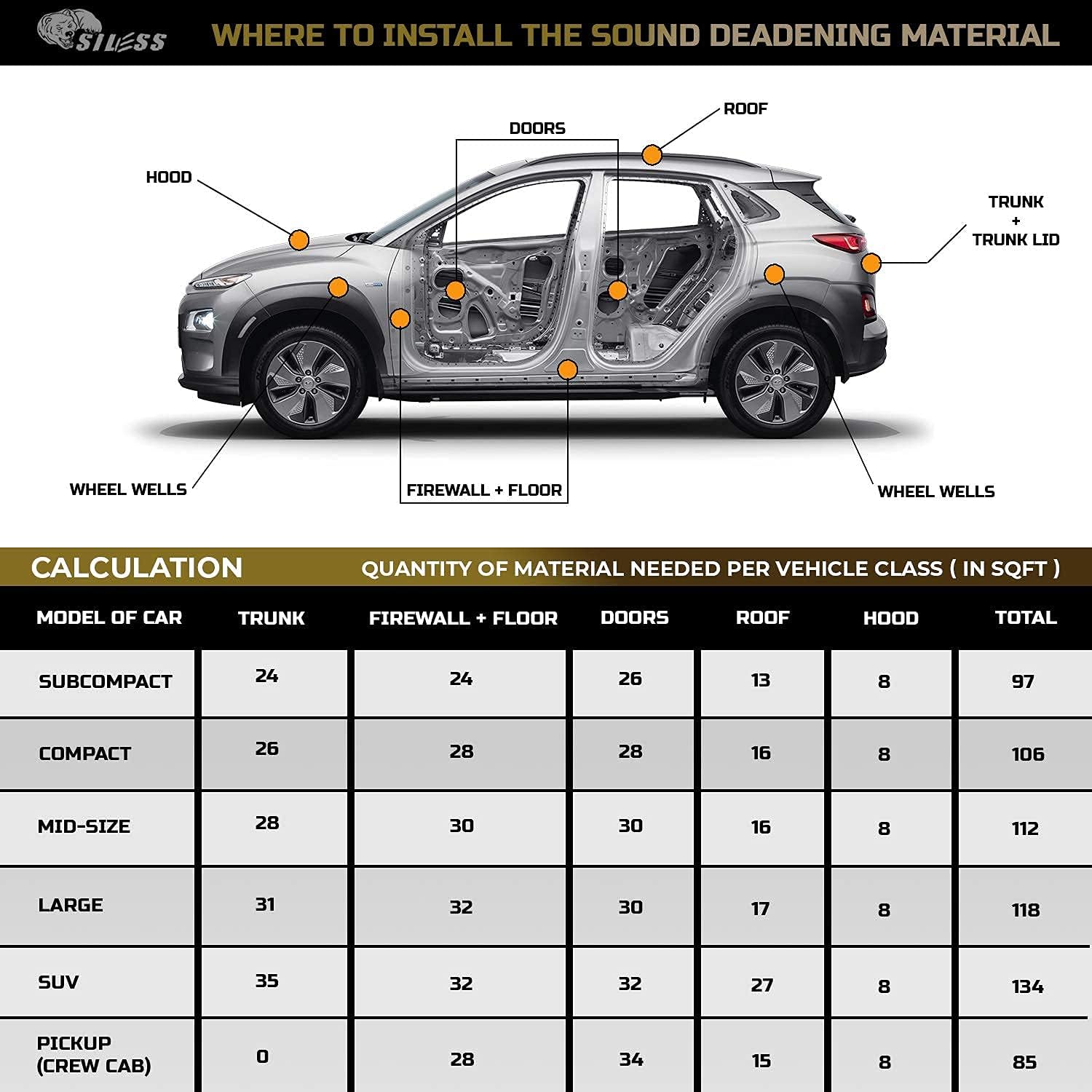 Siless 80 mil (2mm) 18 sqft (1.7 sqm) Car Sound Deadening mat - Butyl Automotive Sound Deadener - Noise Insulation and Vibration Dampening Material (18 sqft)