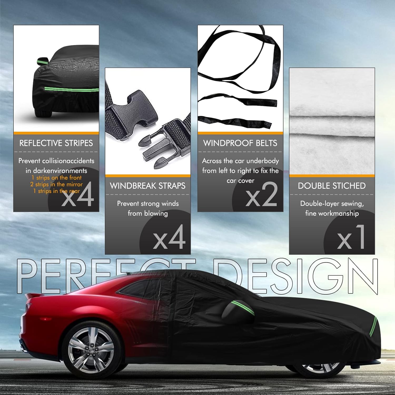 for Chevy Camaro 2010-2022 Car Cover 210D Outdoor Waterproof UV Protection, Custom-fit Protective Full Covers with Cotton Layer, Zipper Door, Reflective Strip, Storage Bag