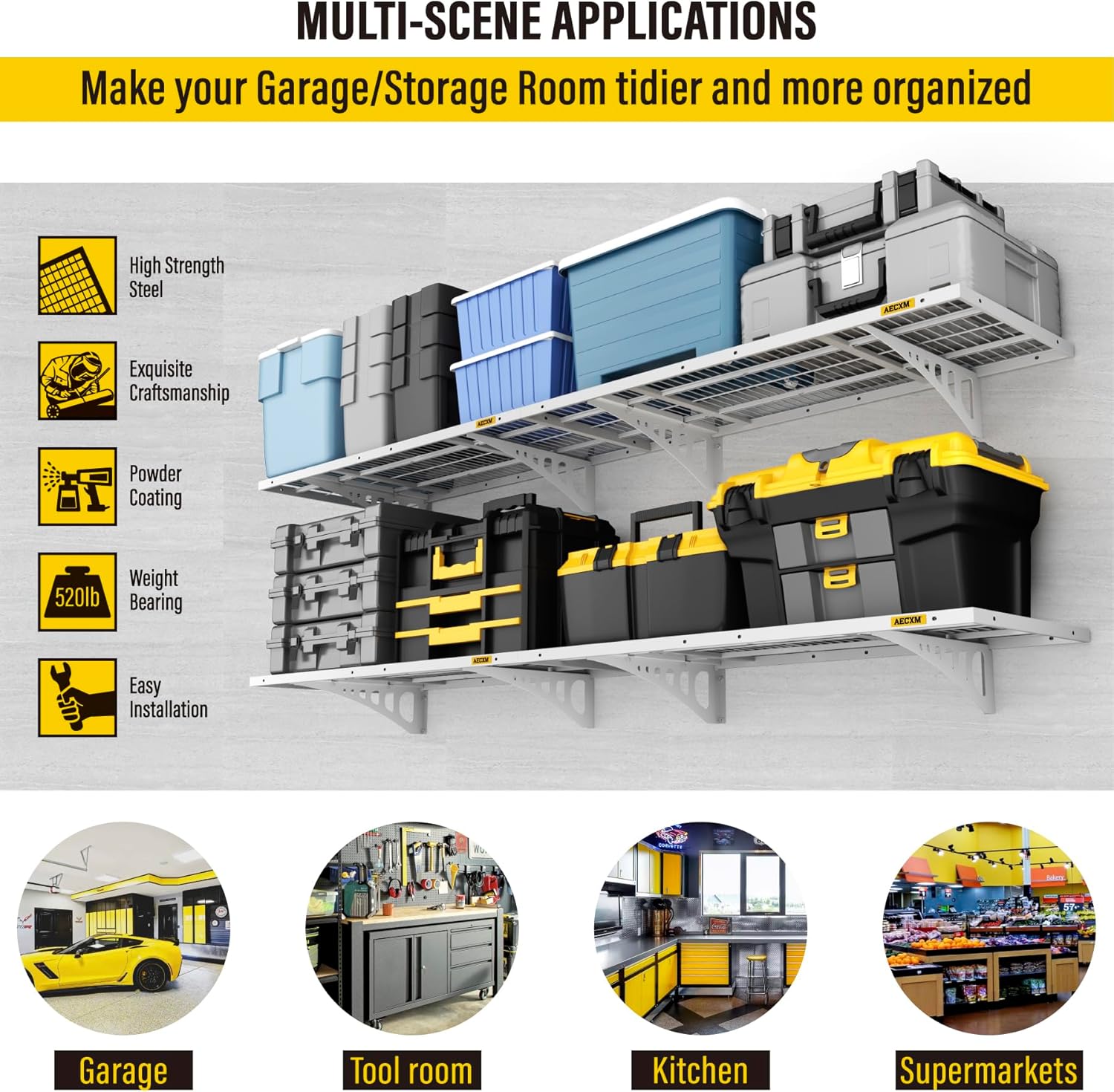 • Premium Materials: Our garage shelving features a rectangular tube frame paired with thick welded wire mesh for superior strength. Finished with a fine sand-texture, high-temperature powder coating, it delivers a sleek, modern, and perfectly flat design