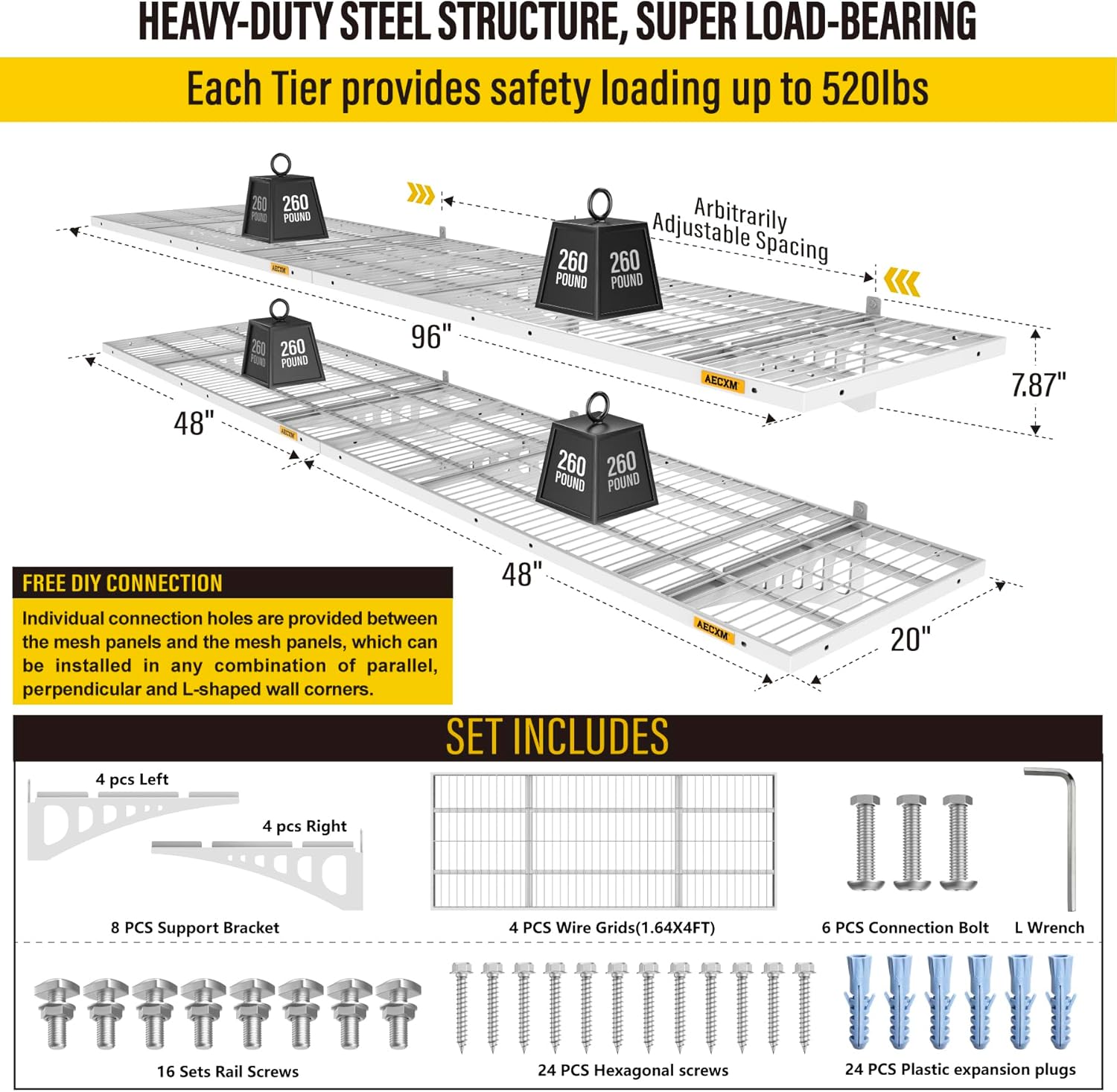 • Customer Support: Aecxm offers full after-sales service to protect your purchase. Contact us anytime for assistance. (Note: For brick or concrete walls, use expansion anchors to securely fasten the heavy duty wire shelving after drilling.)