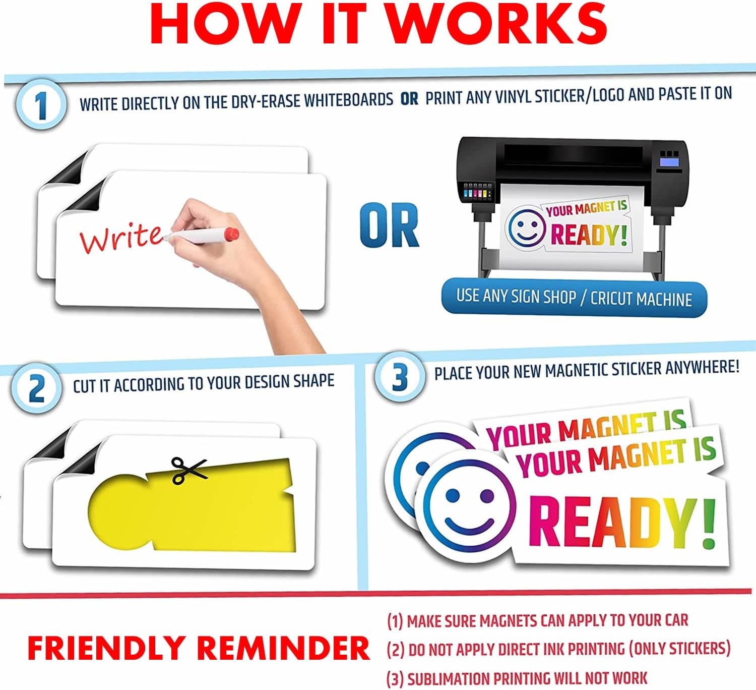 • Used as personalized magnets, customized car magnets and decals to print advertisement you want or repeated scribbling.