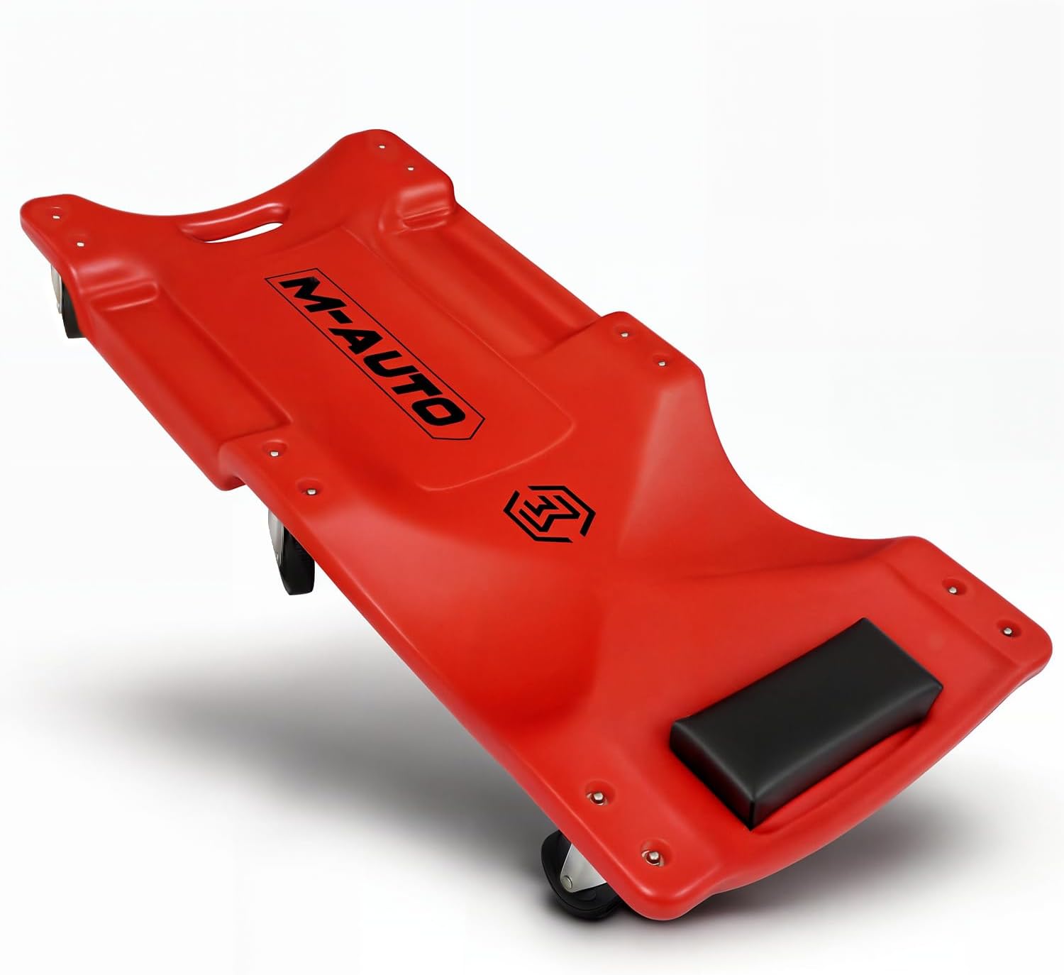 M-AUTO Mechanic Roller Creeper with Padded Headrest, 40" Dual Tool Trays Rolling Creeper for Garage Shop Auto Work Repair, Noiseless Swivel Casters, Red