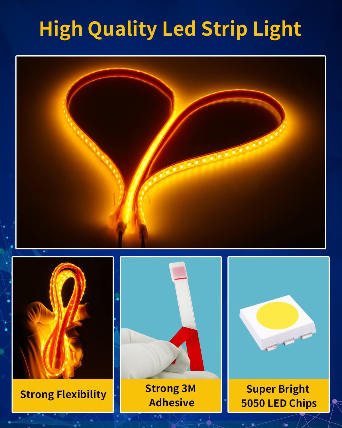 Amber Led Strip Lights,24inch 12V Interior Light Strip IP68 Waterproof Cuttable for Car Motorcycles Boat Golf Cart Truck Cargo Home Decoration with Strong Nano Tape(4PCS)