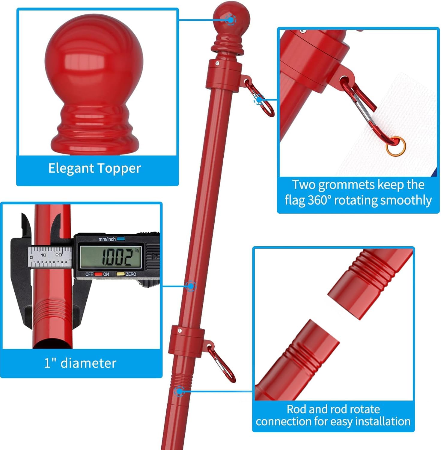 - Adjustable Length: The flag pole kit is equipped with multiple parts. Its length can be adjusted between 1.3 feet and 6 feet (2ft/3ft/4ft/5ft/6ft) to meet your various requirements and different size flags