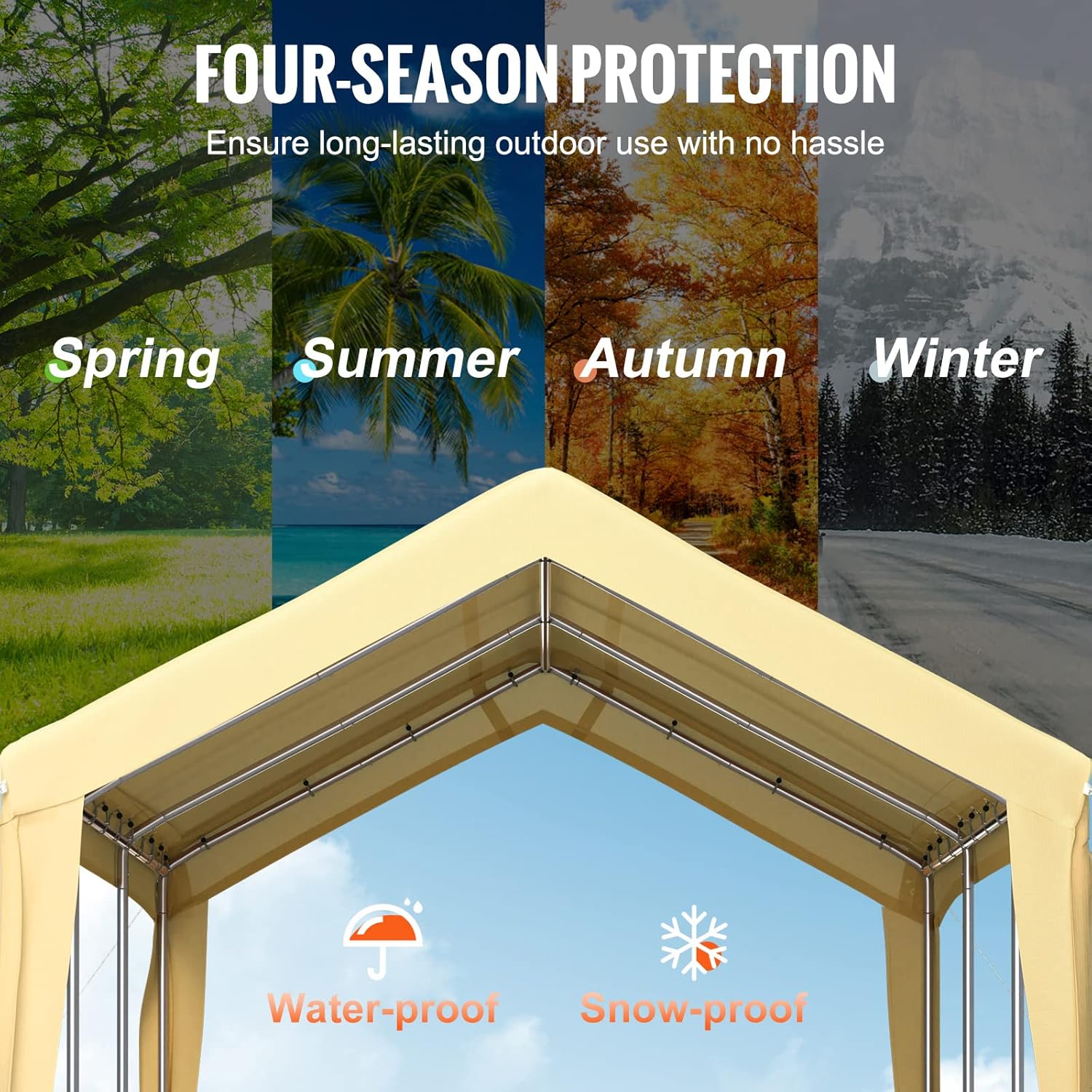 VEVOR Carport 10x20 ft Heavy Duty Canopy, Portable Garage Shelter with 8 Legs, Removable Sidewalls & Windows, Adjustable Peak Height 8.3-10 ft, Ideal for Cars, Boats, and Parties, Yellow
