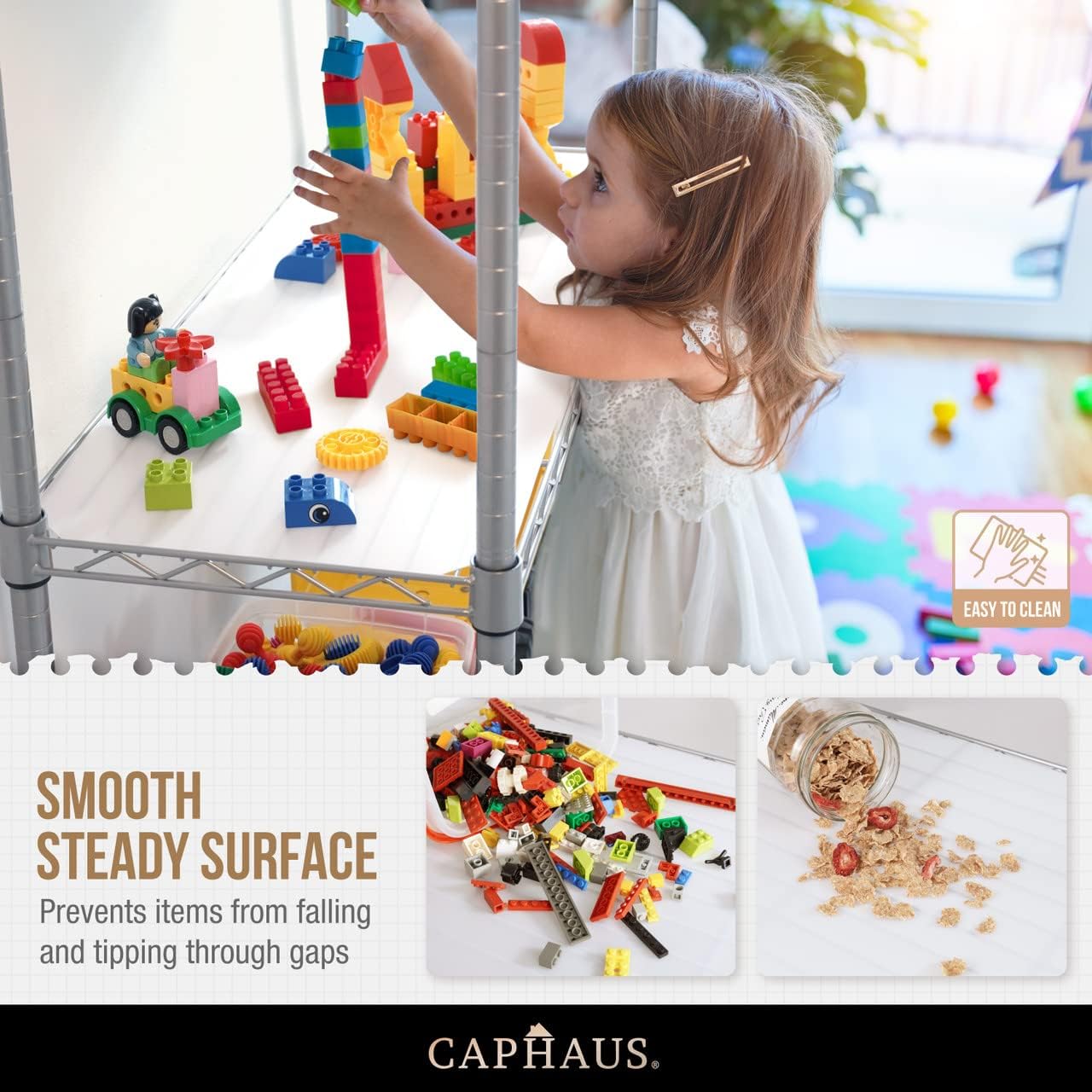 - π¨ Adjustability For Different Storage Purpose β With the height adjustable design, you can adjust each height of the shelves to fit the item you storage. It offers a customized unit best suited for your own needs. Just snap the clip on and move it up or down where you want it and it will click into the groove, it is painless to assemble it!
