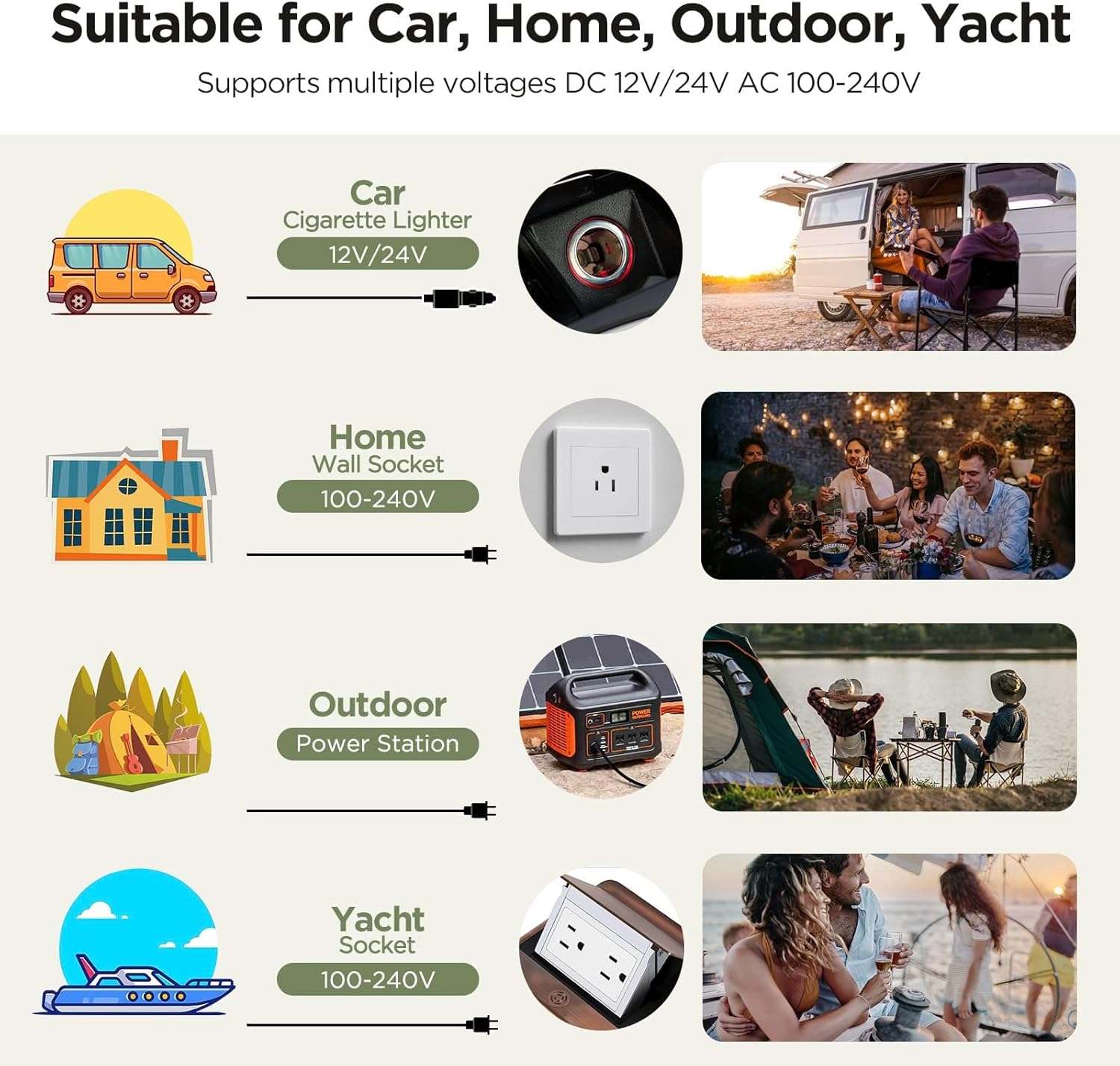 - 【Low Noise&Voltage Protection】This electric coolers is designed with 45dB noise level is quieter than a standard household fridge. This rugged 12v refrigerator also has a built-in battery protection with low voltage detection auto cutoff to ensure your car battery doesn’t get drained in case you forget, electric car cooler maximizing car's battery life.