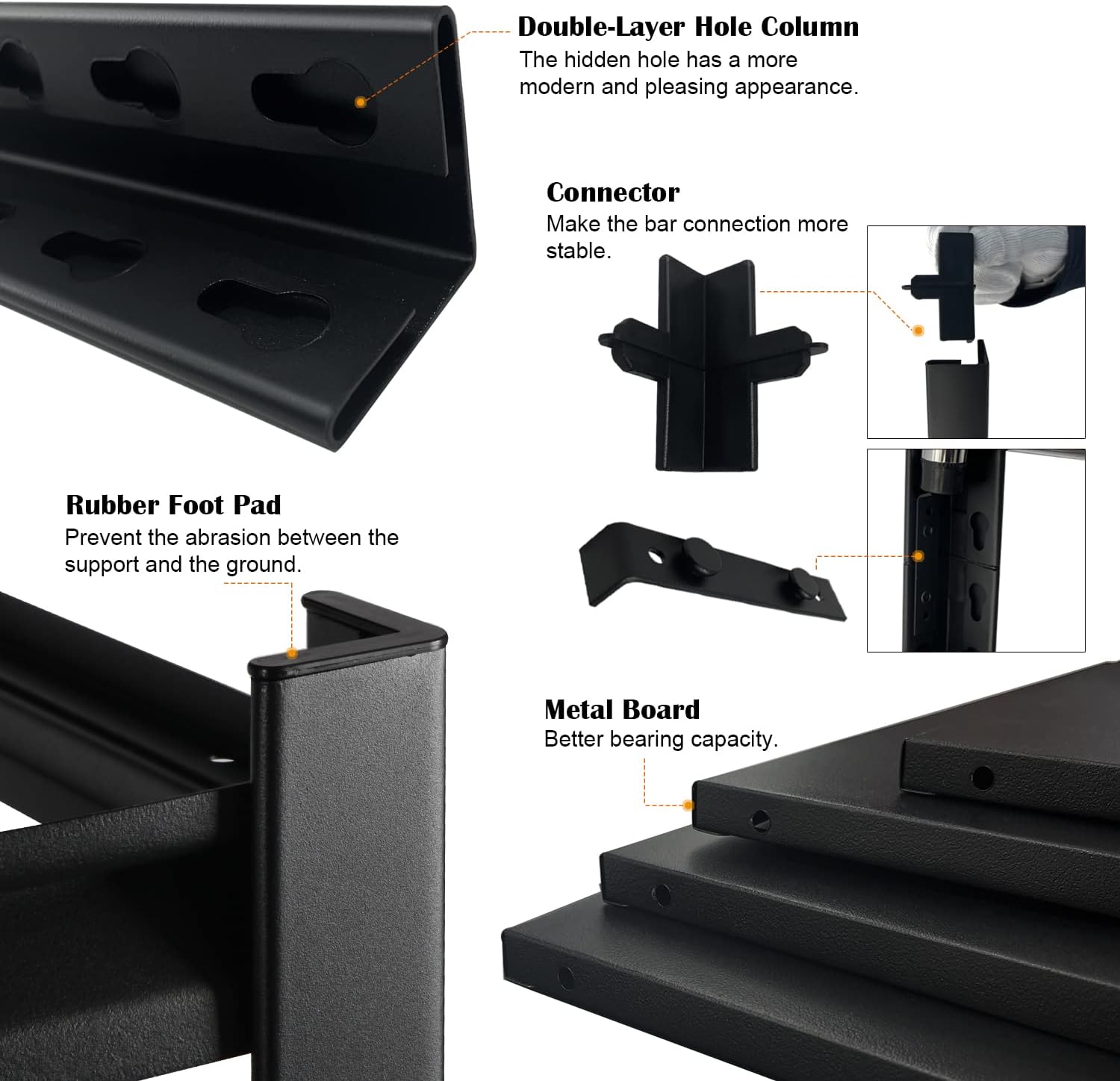 - STURDY & RUST-PROOF: Black powder-coated steel construction for extra durability, this heavy-duty storage shelves boasts a moisture-resistant and water-resistant coating, ensuring easy cleaning and low-maintenance upkeep. Its sleek matte finish adds an industrial flair to any setting. And, when loaded, it didn’t rock or move at all.