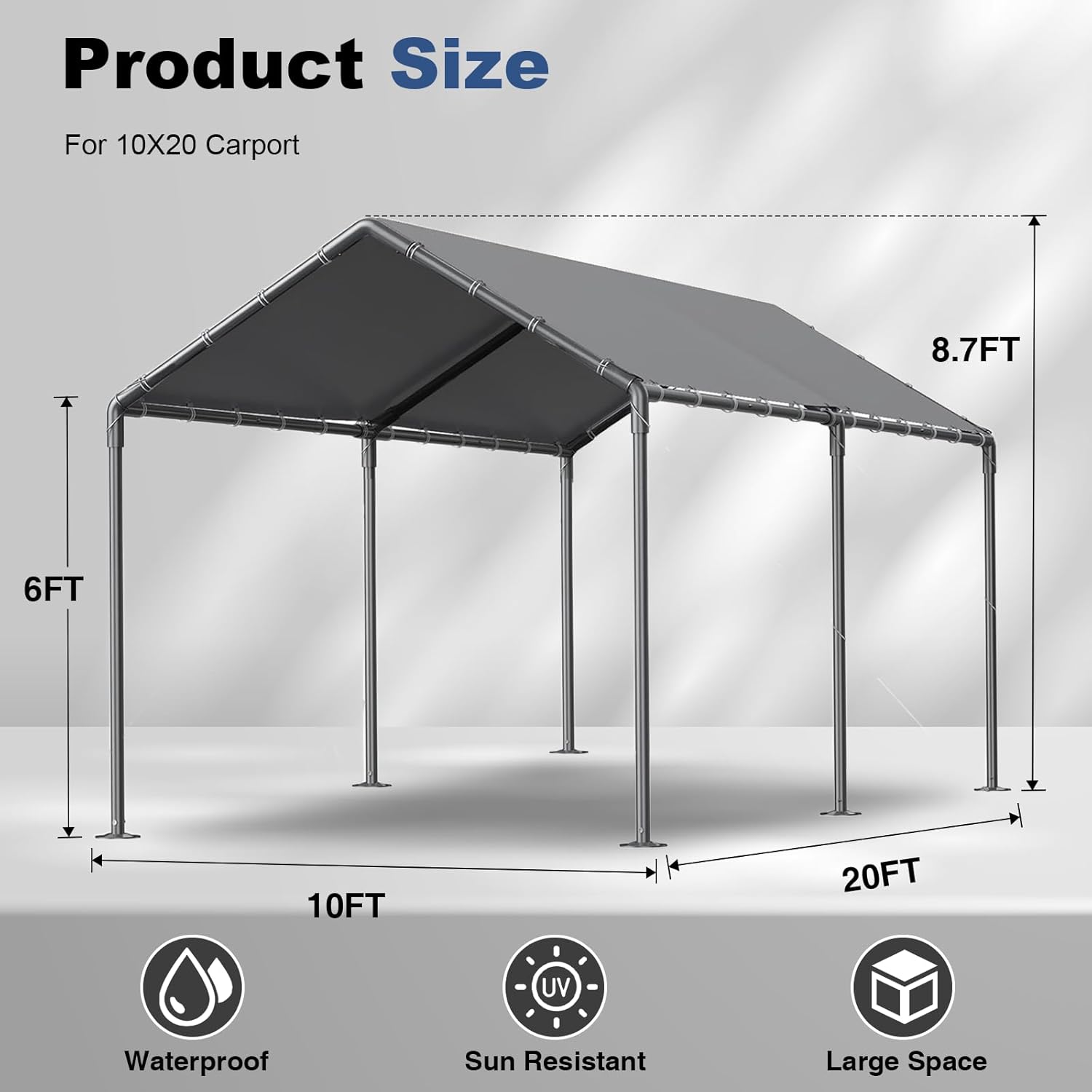 - Spacious space: 10*20FT heavy-duty canopy provides ample space for your vehicles, trucks and boats