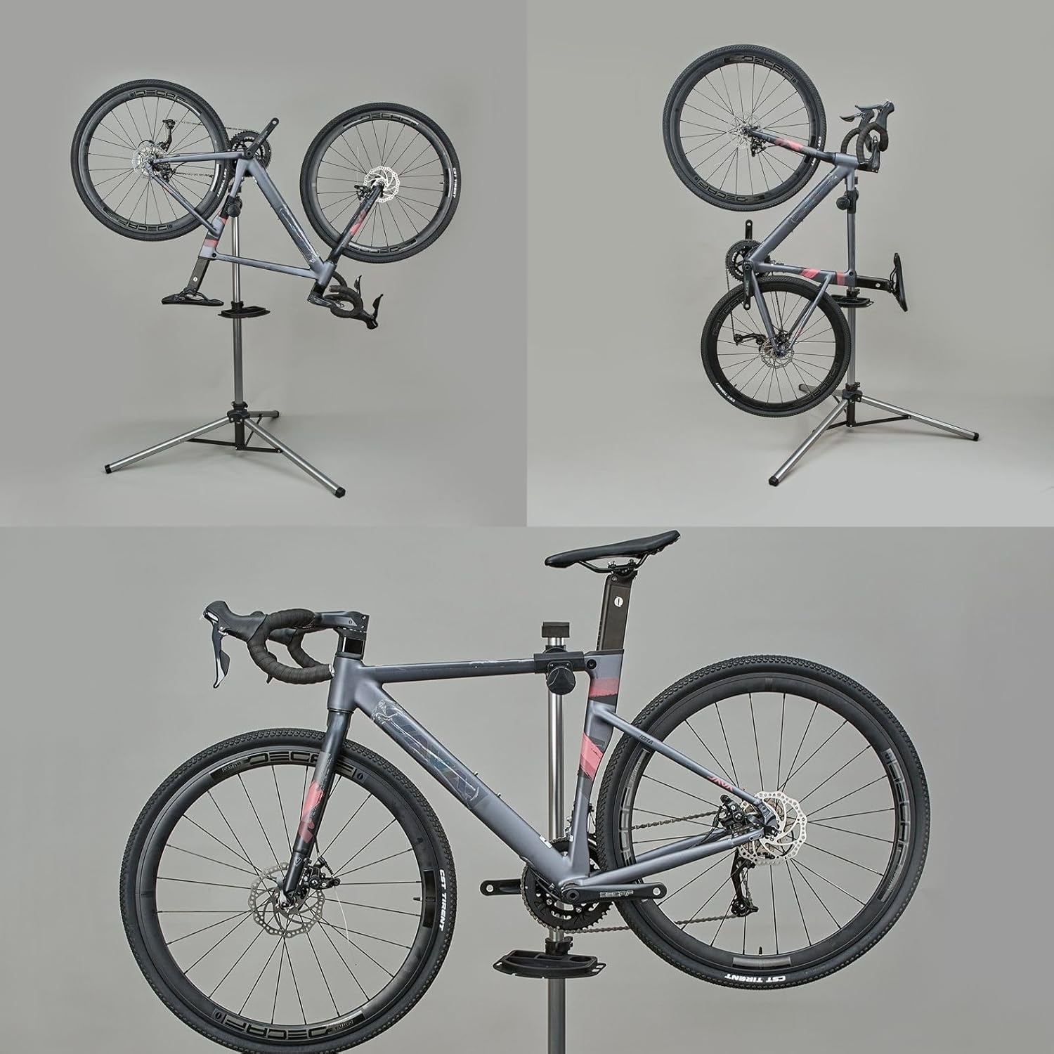 - šššš®š«š šš„šš¦š©š¢š§š - On our bike maintenance stand we use adjustable clamps to adjust the height, securely tightening. We use internal teeth for the main stand arm to stop rotation when clamped. Also, rotate the main bike stand arm to suit whatever angle you need to work from. A secure clamping mechanism is an essential aspect of a bicycle maintenance stand. It helps to hold the bike in place while you work, ensuring that it doesn't move or slip during maintenance tasks.