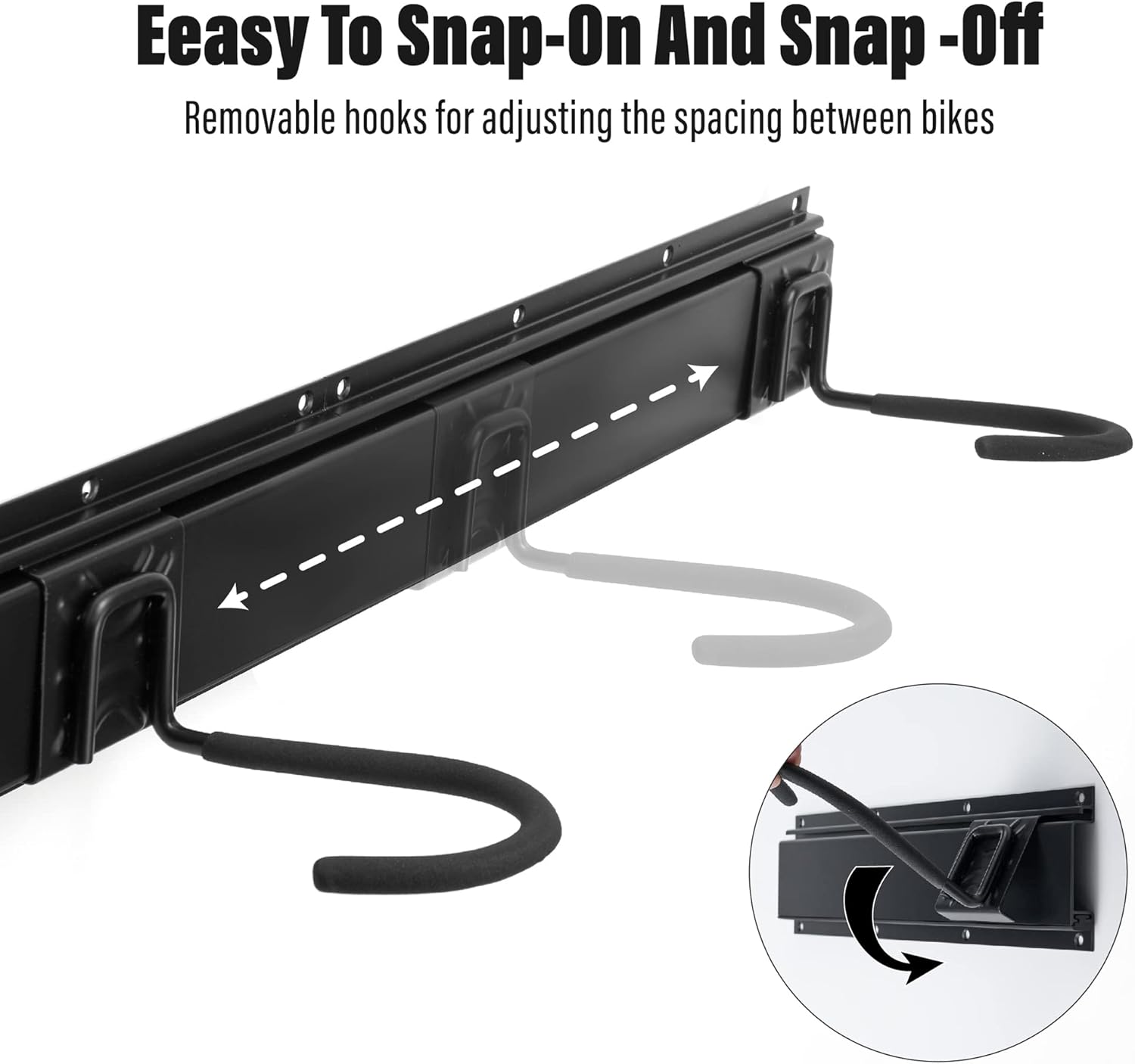 - Save space and store your bike conveniently - free up floor space - and keep your garage or interior neat and tidy. The bike rack consists of three 16" components that can be installed remotely and are split for easy access, flexible positioning and better value for money. Each hook holds bikes weighing up to 30 kg / 66.2 lbs. Not compatible with high-performance e-bikes!