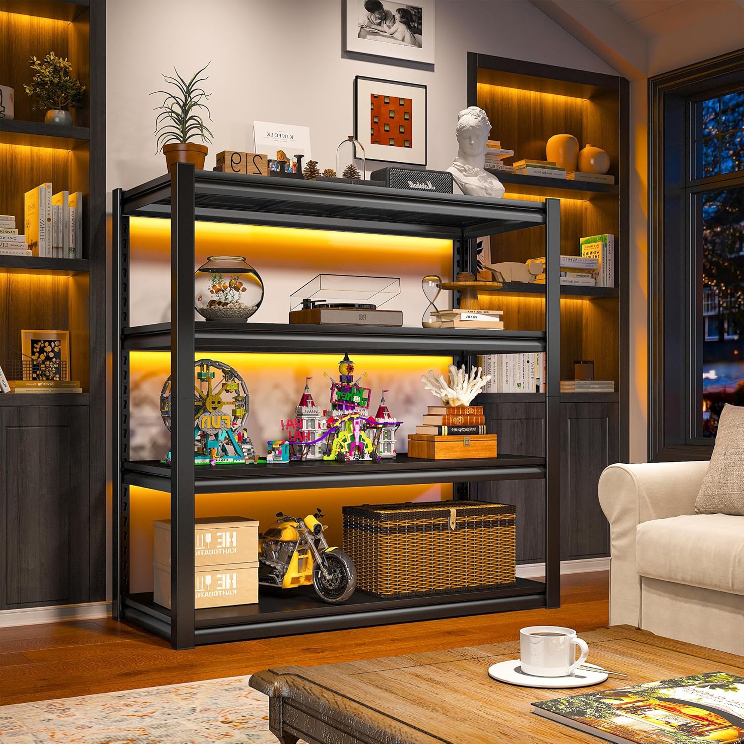 - ăSturdy & Durable & Rust-Proof Heavy Duty Shelvingă All metal structure ïŒ 2-layers metal leg ïŒ 4 ribs for every metal shelf rack make the garage shelving for storage super stable & durable.The steel storage shelves use an anti-rust painting tech, easy to clean, moisture-proof and rust-proof. It will not wobble or shake no matter how many stuffs(even nothing) you put on. This matal shelving can serve you for many years