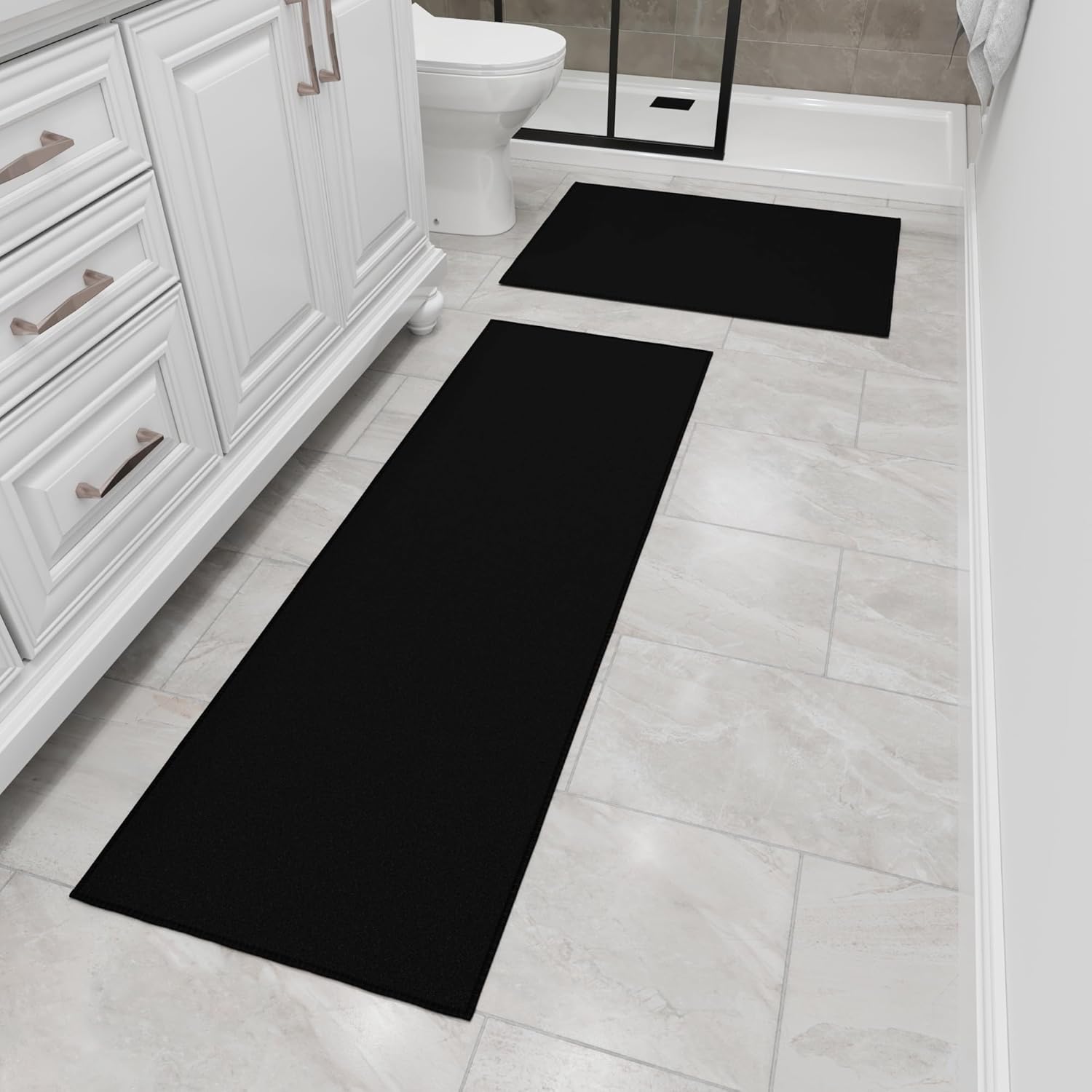 Ottomanson 2-Piece Kitchen Rug Set - Non Slip, Runner & Small Area Rug - Solid - 20" x 59" & 2'3" x 3' - Durable, Stain Resistant for Entryway, Bedroom and Bathroom, Black