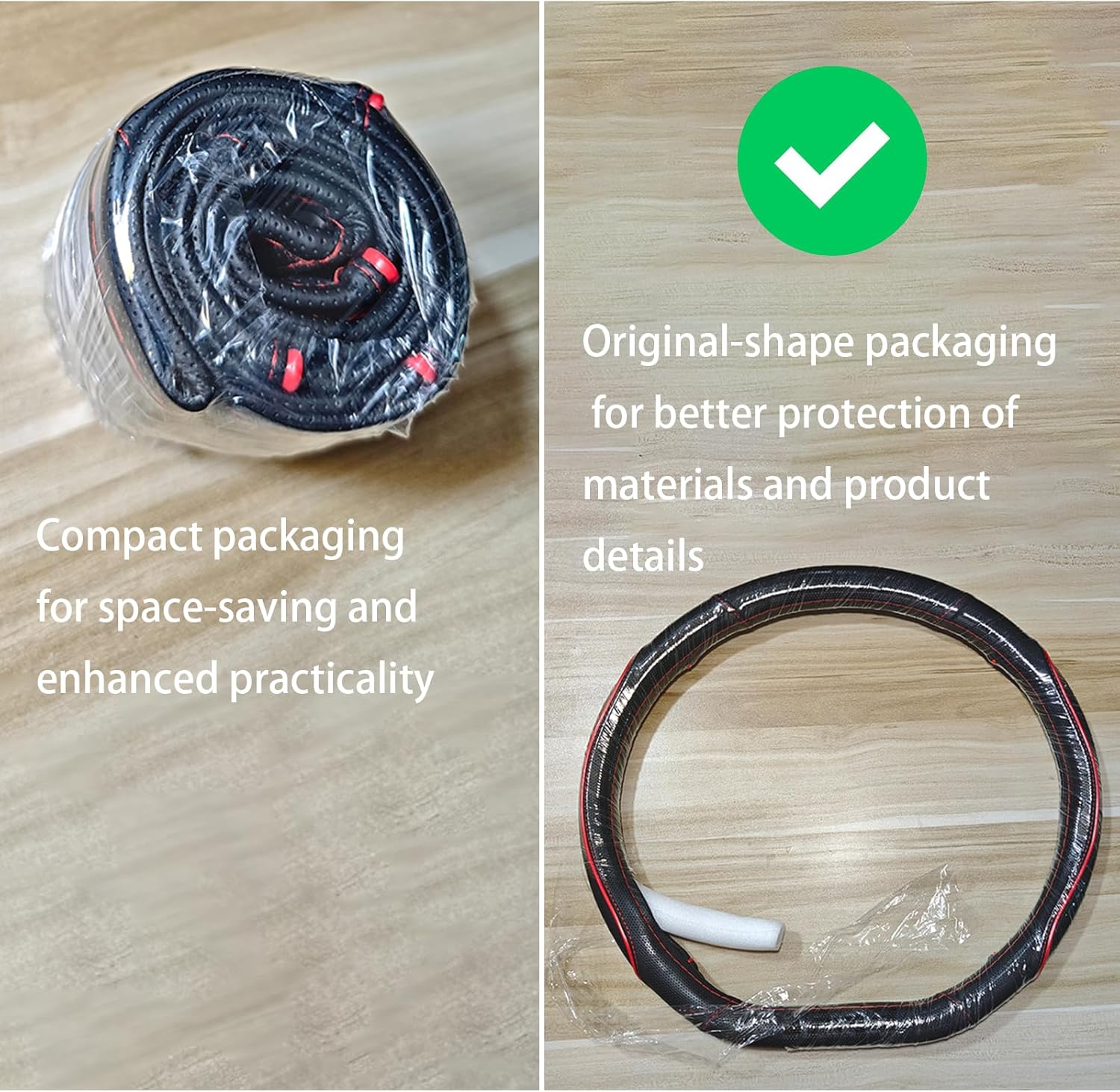 - product design:suitable for 15 inch D-shaped flat bottom steering wheel。 The steering wheel cover is designed with bumps at 2 o'clock and 10 o'clock, 4 o'clock and 8 o'clock, which can better fit the steering wheel and grip, and have a super-class driving experience.