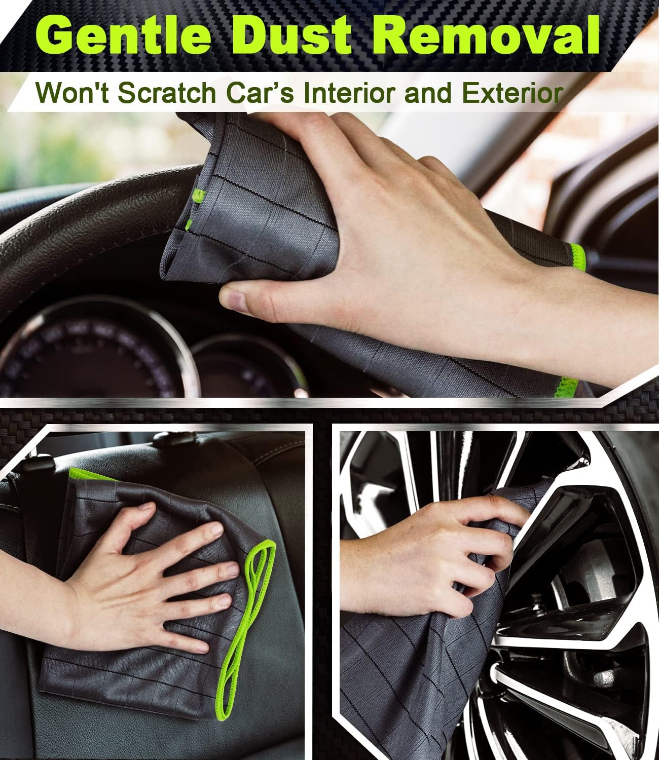 - Carbon Fiber Technology: Made with highly absorbent, and non-abrasive microfiber material, these cleaning cloths prevent scratches on surfaces, ensuring a gentle and safe cleaning experience, leaving your car's finish spotless and streak-free